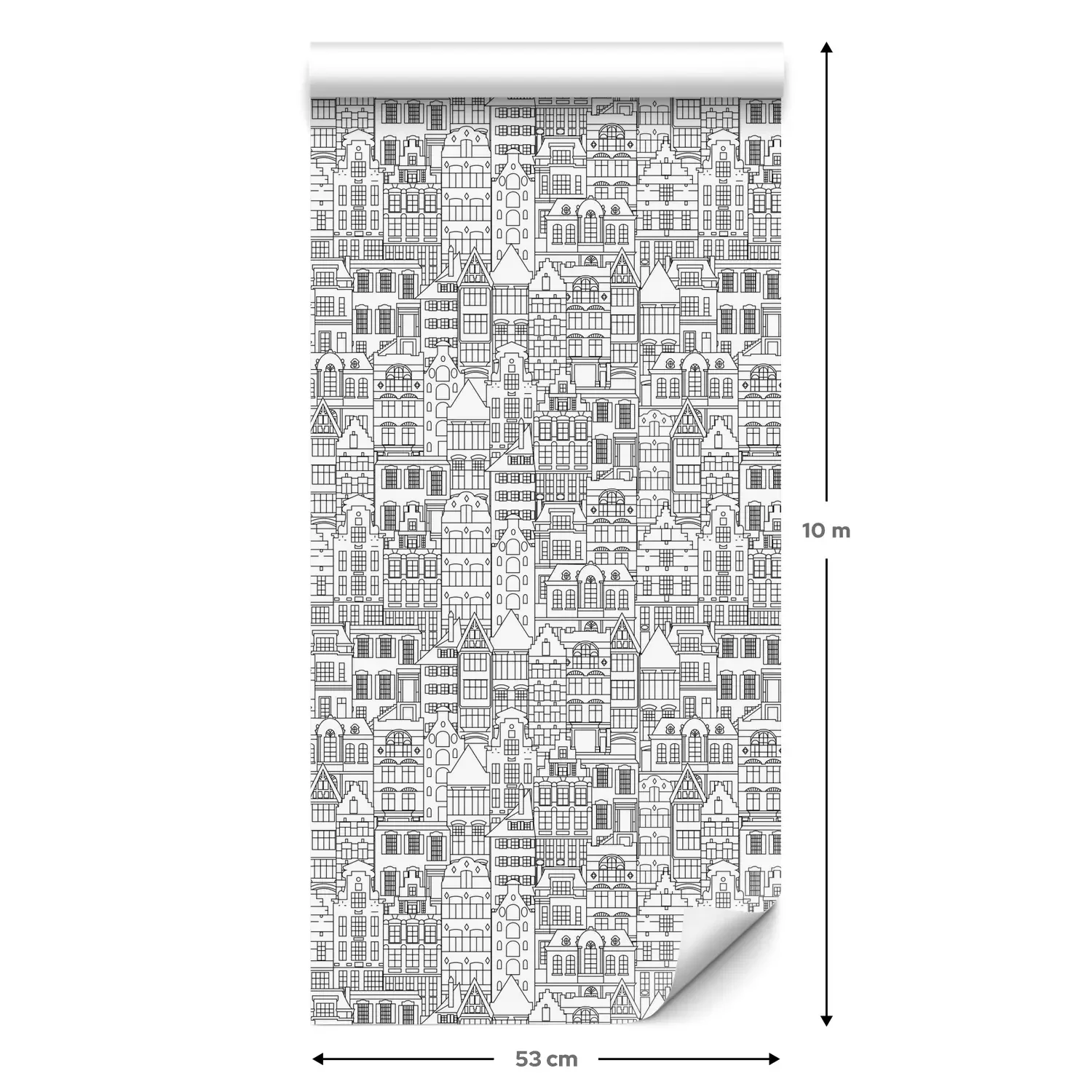 Eine Standard-Tapetenrolle hat die Maße 0,53 m x 10 m und deckt eine Wandfläche von etwa 5 m² ab.