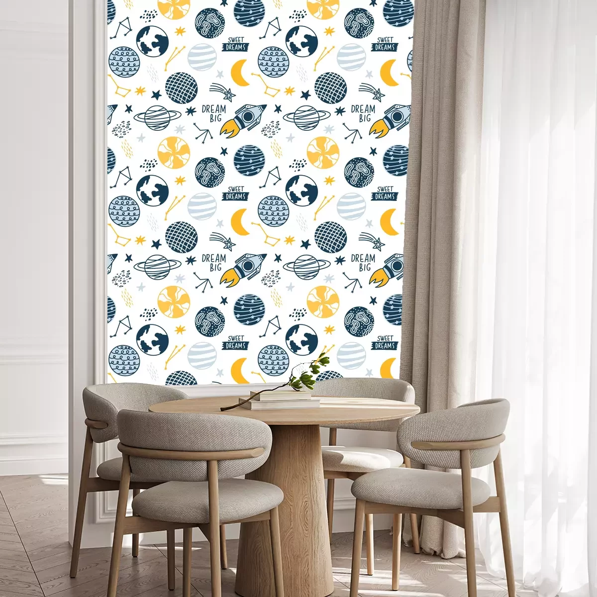 Die Tapete zeichnet sich durch ein sich wiederholendes Muster aus, das ein rhythmisches Design erzeugt. Als Trägermaterial wird hier Vlies verwendet. Sie wird in Rollen mit den standardisierten Maßen 10 m x 53 cm verkauft. Eine Fototapete ist eine spezielle Art von Tapete, auf der ein Foto oder ein realistisches Bild (z.B. eine Landschaft oder eine Stadtansicht) großflächig aufgedruckt ist. Sie wird nicht in Standardrollen verkauft, sondern in Bahnen, die auf die Abmessungen einer bestimmten Wand zugeschnitten sind. So passt das gesamte Motiv perfekt darauf. Zudem können Sie das Material wählen, aus dem die Tapete hergestellt werden soll.