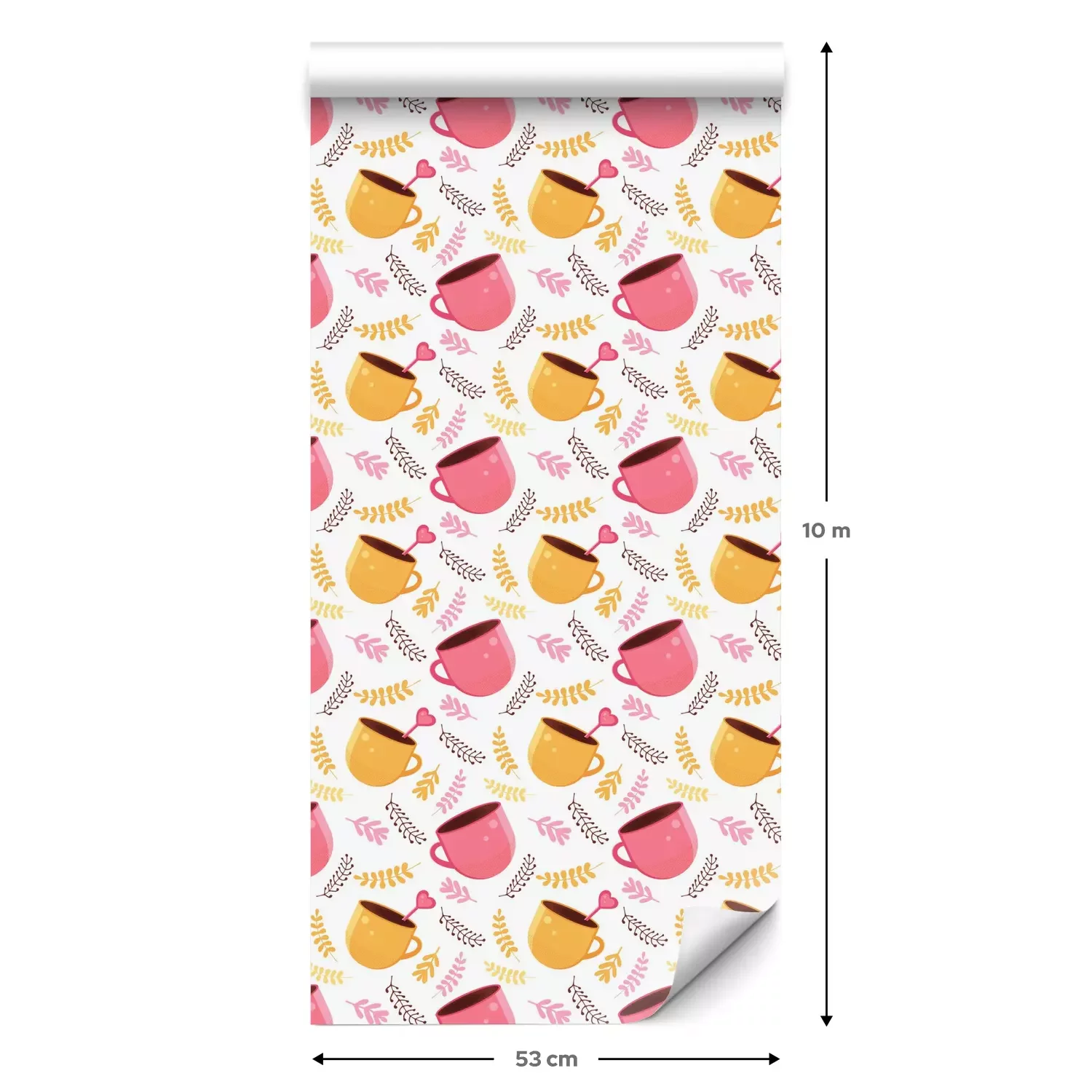 Eine Standard-Tapetenrolle hat die Maße 0,53 m x 10 m und deckt eine Wandfläche von etwa 5 m² ab.
