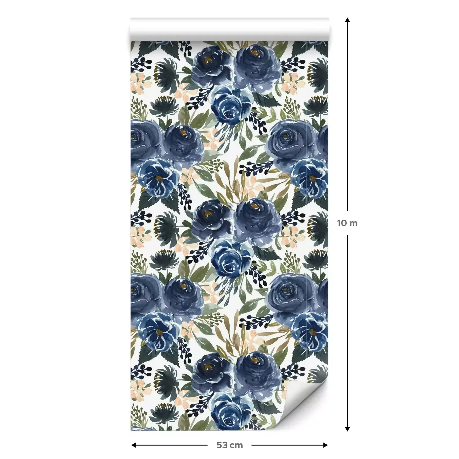 Eine Standard-Tapetenrolle hat die Maße 0,53 m x 10 m und deckt eine Wandfläche von etwa 5 m² ab.