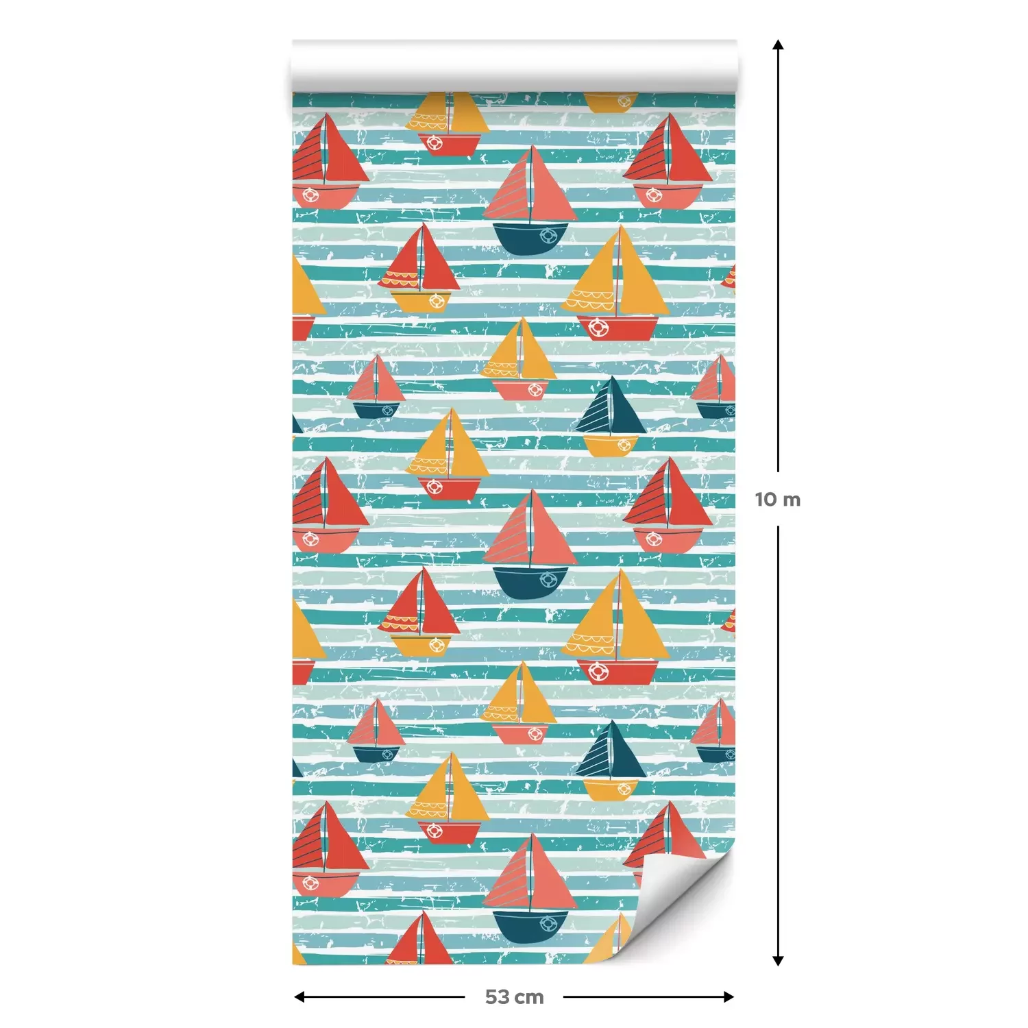 Eine Standard-Tapetenrolle hat die Maße 0,53 m x 10 m und deckt eine Wandfläche von etwa 5 m² ab.