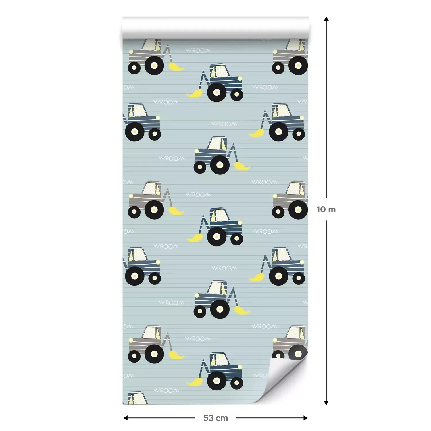 Eine Standard-Tapetenrolle hat die Maße 0,53 m x 10 m und deckt eine Wandfläche von etwa 5 m² ab.