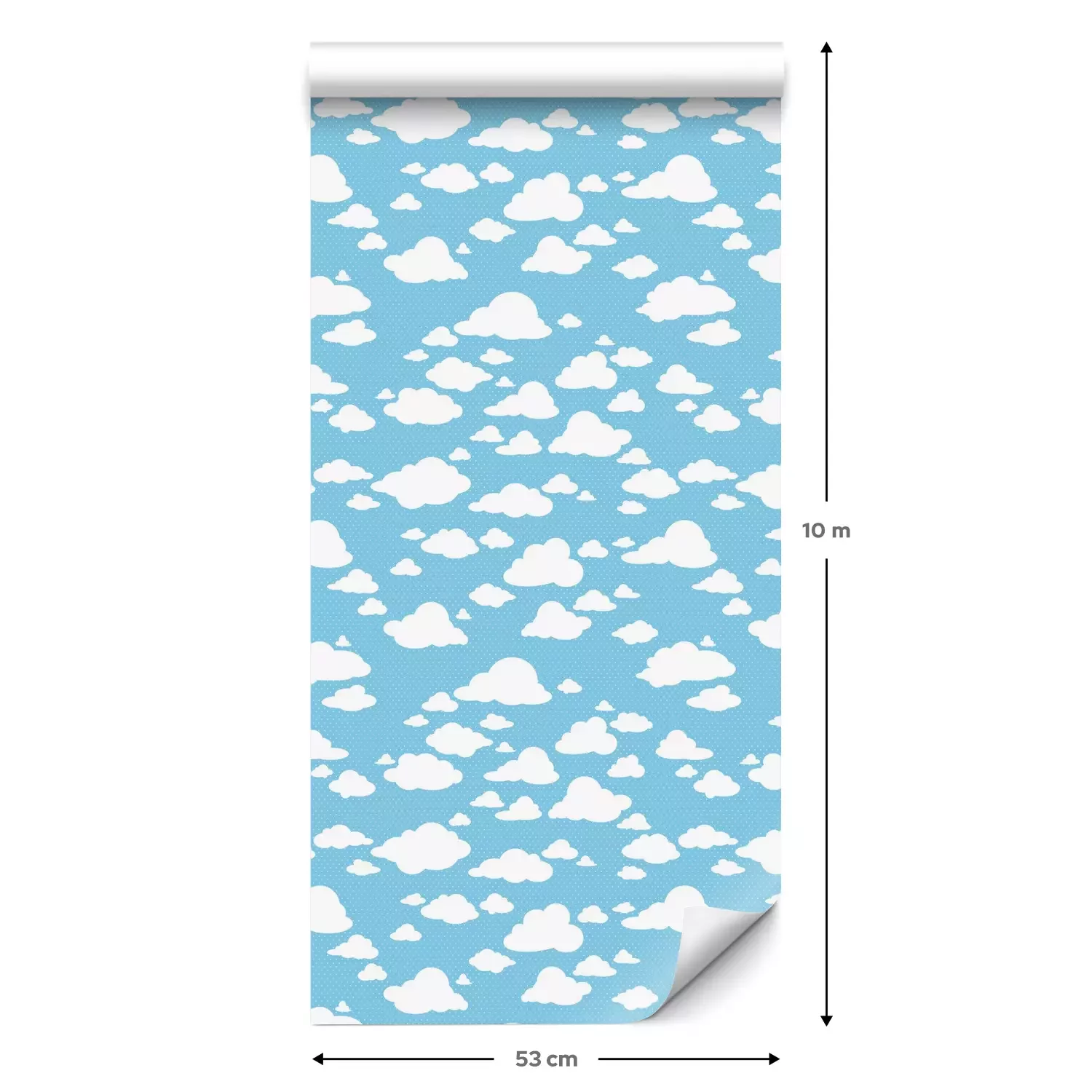 Eine Standard-Tapetenrolle hat die Maße 0,53 m x 10 m und deckt eine Wandfläche von etwa 5 m² ab.
