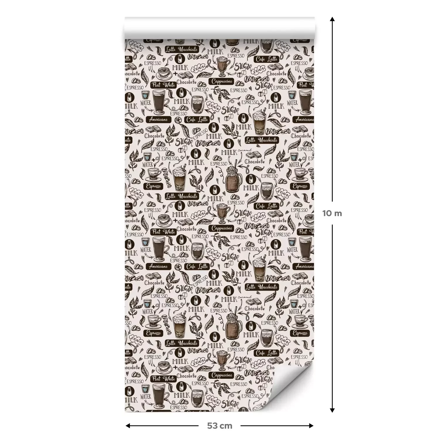 Eine Standard-Tapetenrolle hat die Maße 0,53 m x 10 m und deckt eine Wandfläche von etwa 5 m² ab.