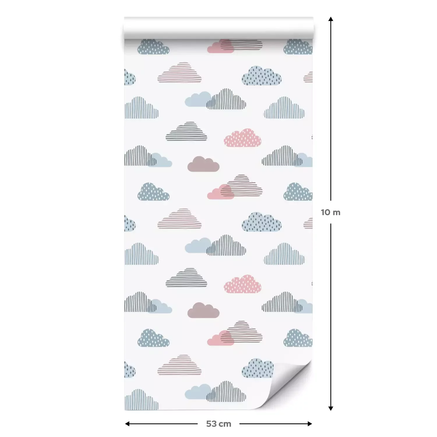 Eine Standard-Tapetenrolle hat die Maße 0,53 m x 10 m und deckt eine Wandfläche von etwa 5 m² ab.