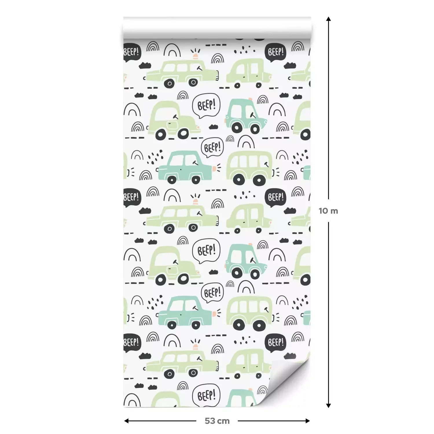 Eine Standard-Tapetenrolle hat die Maße 0,53 m x 10 m und deckt eine Wandfläche von etwa 5 m² ab.