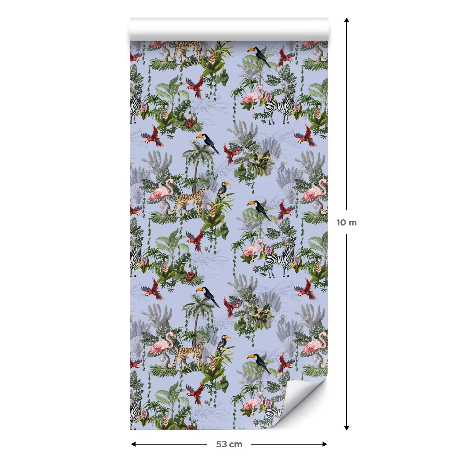 Eine Standard-Tapetenrolle hat die Maße 0,53 m x 10 m und deckt eine Wandfläche von etwa 5 m² ab.