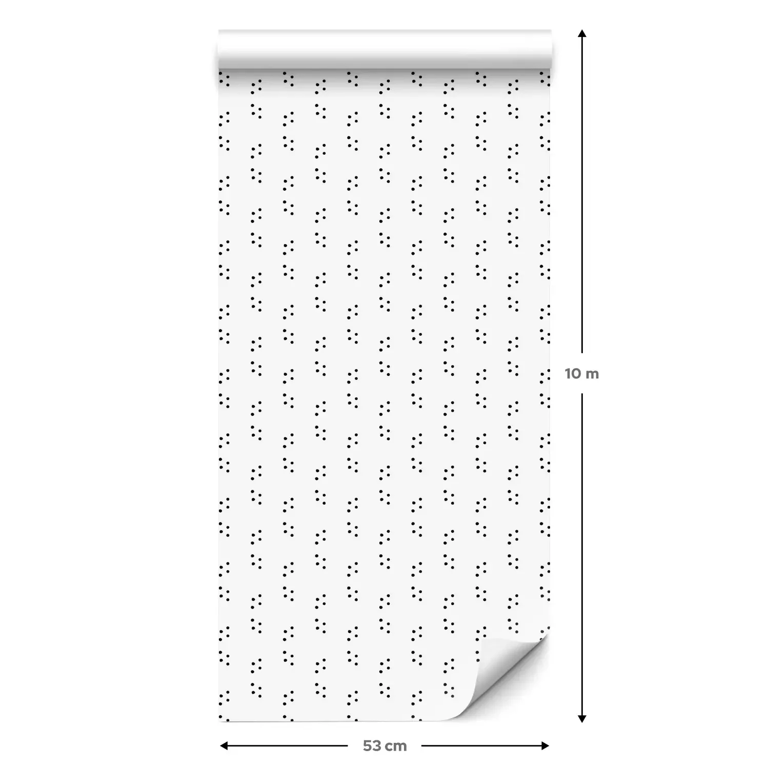 Eine Standard-Tapetenrolle hat die Maße 0,53 m x 10 m und deckt eine Wandfläche von etwa 5 m² ab.