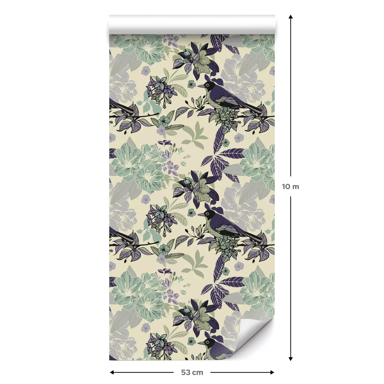 Eine Standard-Tapetenrolle hat die Maße 0,53 m x 10 m und deckt eine Wandfläche von etwa 5 m² ab.