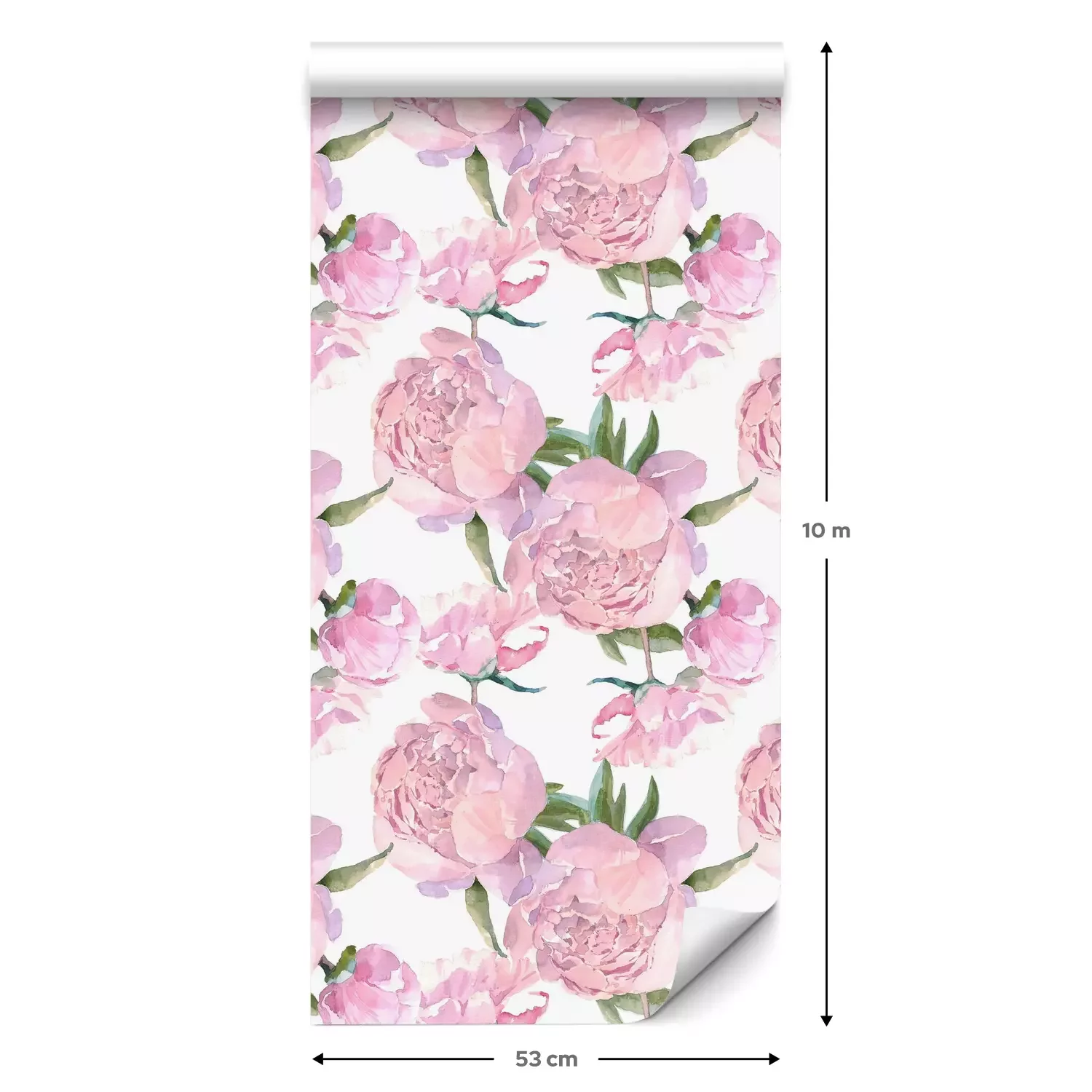 Eine Standard-Tapetenrolle hat die Maße 0,53 m x 10 m und deckt eine Wandfläche von etwa 5 m² ab.