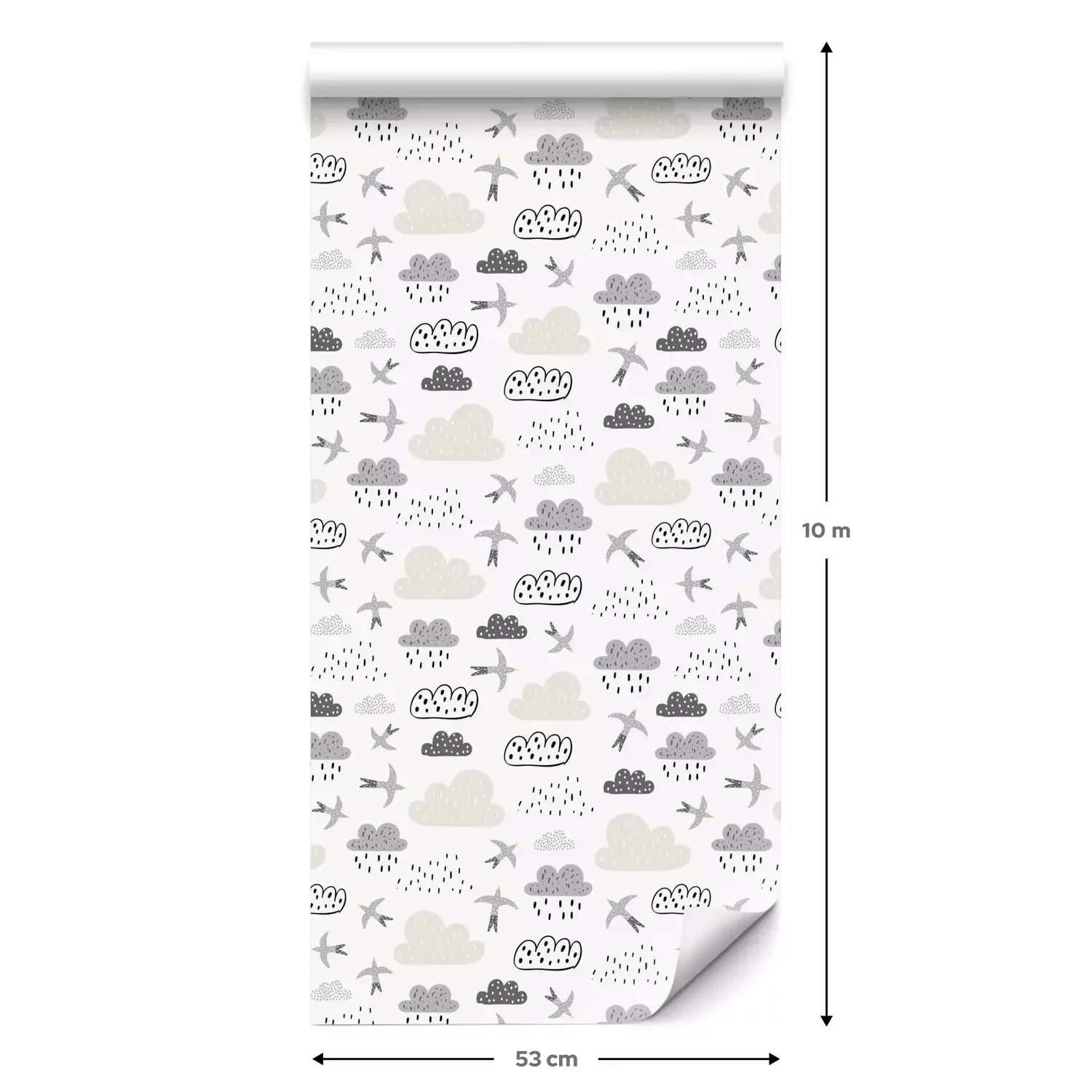 Eine Standard-Tapetenrolle hat die Maße 0,53 m x 10 m und deckt eine Wandfläche von etwa 5 m² ab.