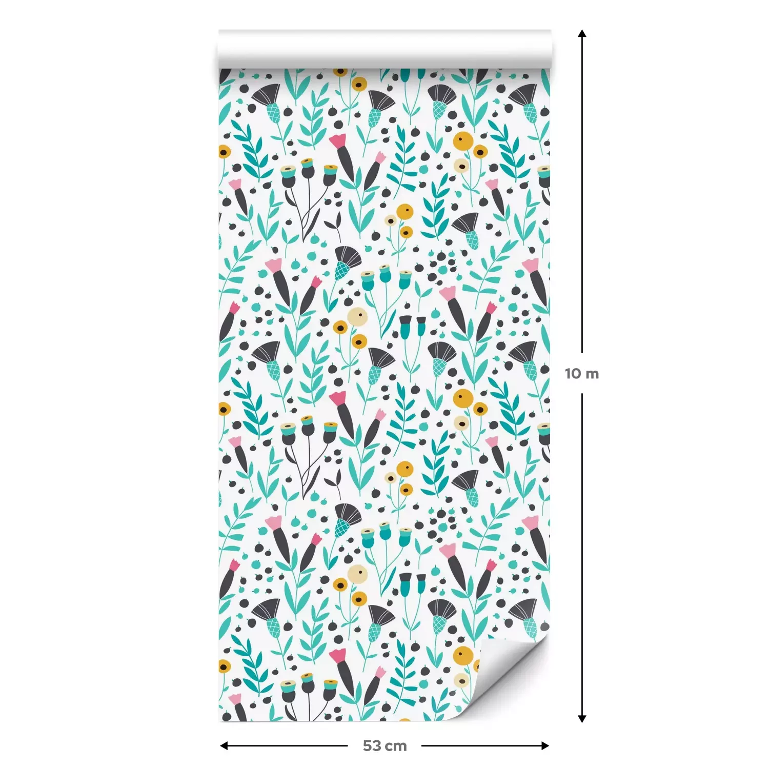 Eine Standard-Tapetenrolle hat die Maße 0,53 m x 10 m und deckt eine Wandfläche von etwa 5 m² ab.