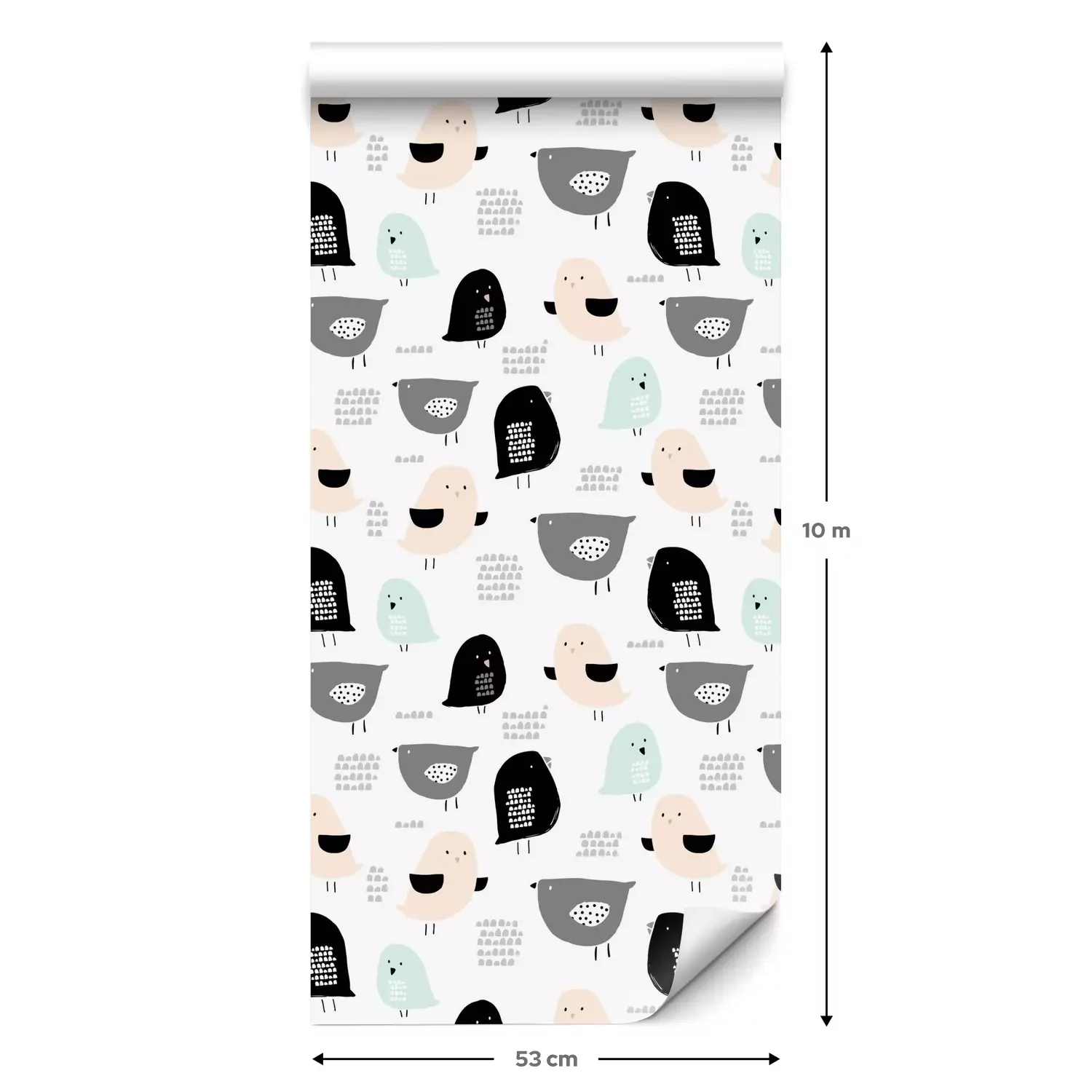 Eine Standard-Tapetenrolle hat die Maße 0,53 m x 10 m und deckt eine Wandfläche von etwa 5 m² ab.