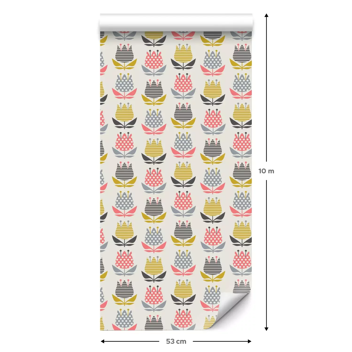 Eine Standard-Tapetenrolle hat die Maße 0,53 m x 10 m und deckt eine Wandfläche von etwa 5 m² ab.
