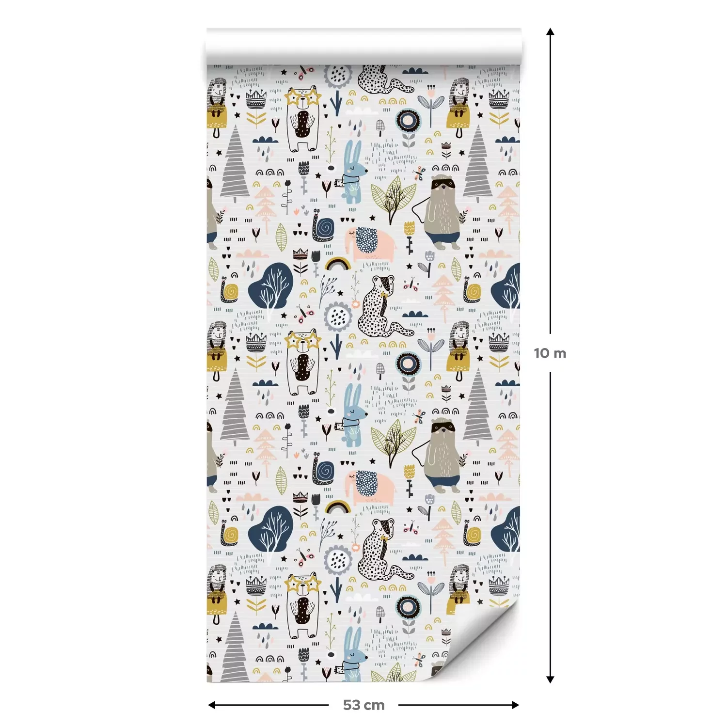 Eine Standard-Tapetenrolle hat die Maße 0,53 m x 10 m und deckt eine Wandfläche von etwa 5 m² ab.