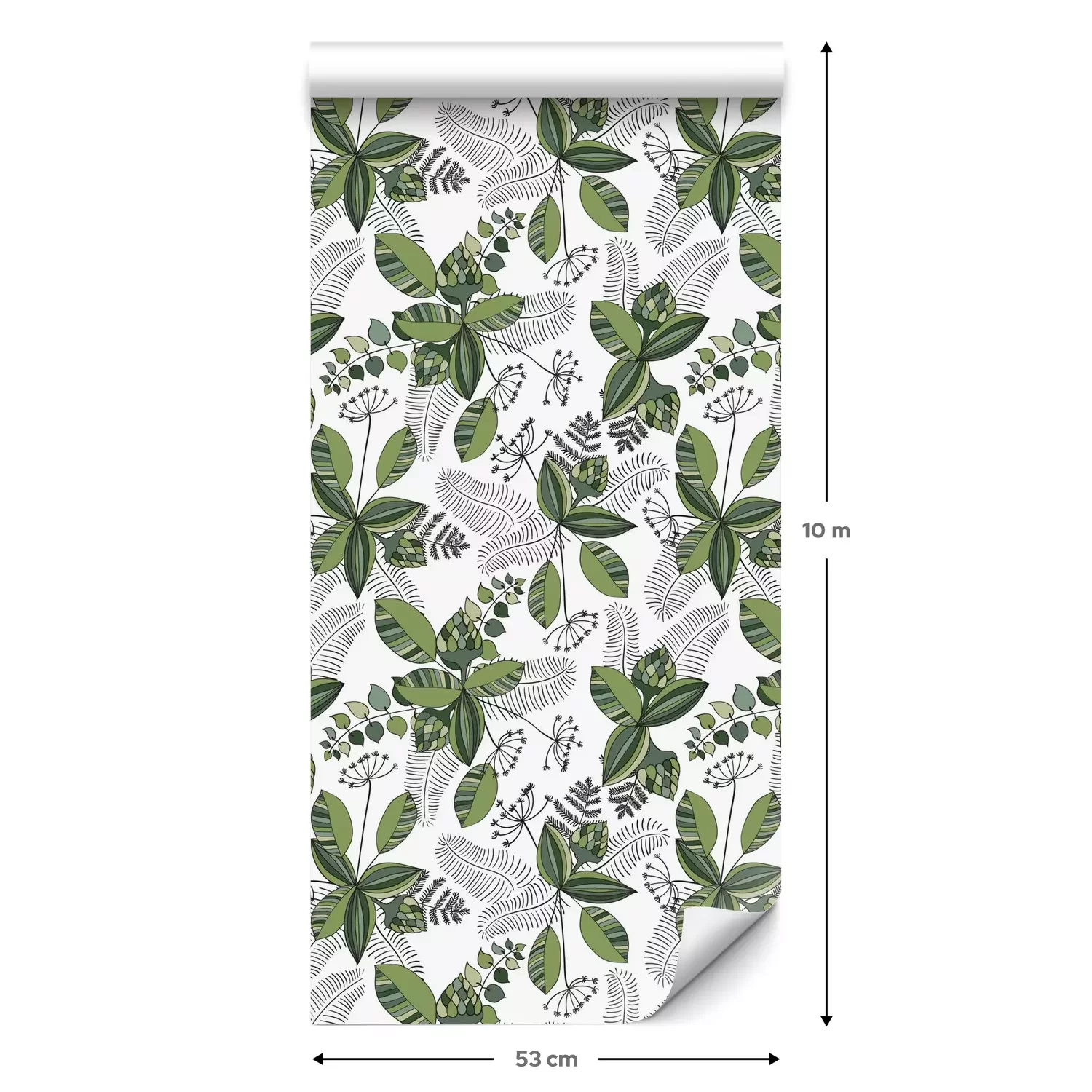 Eine Standard-Tapetenrolle hat die Maße 0,53 m x 10 m und deckt eine Wandfläche von etwa 5 m² ab.