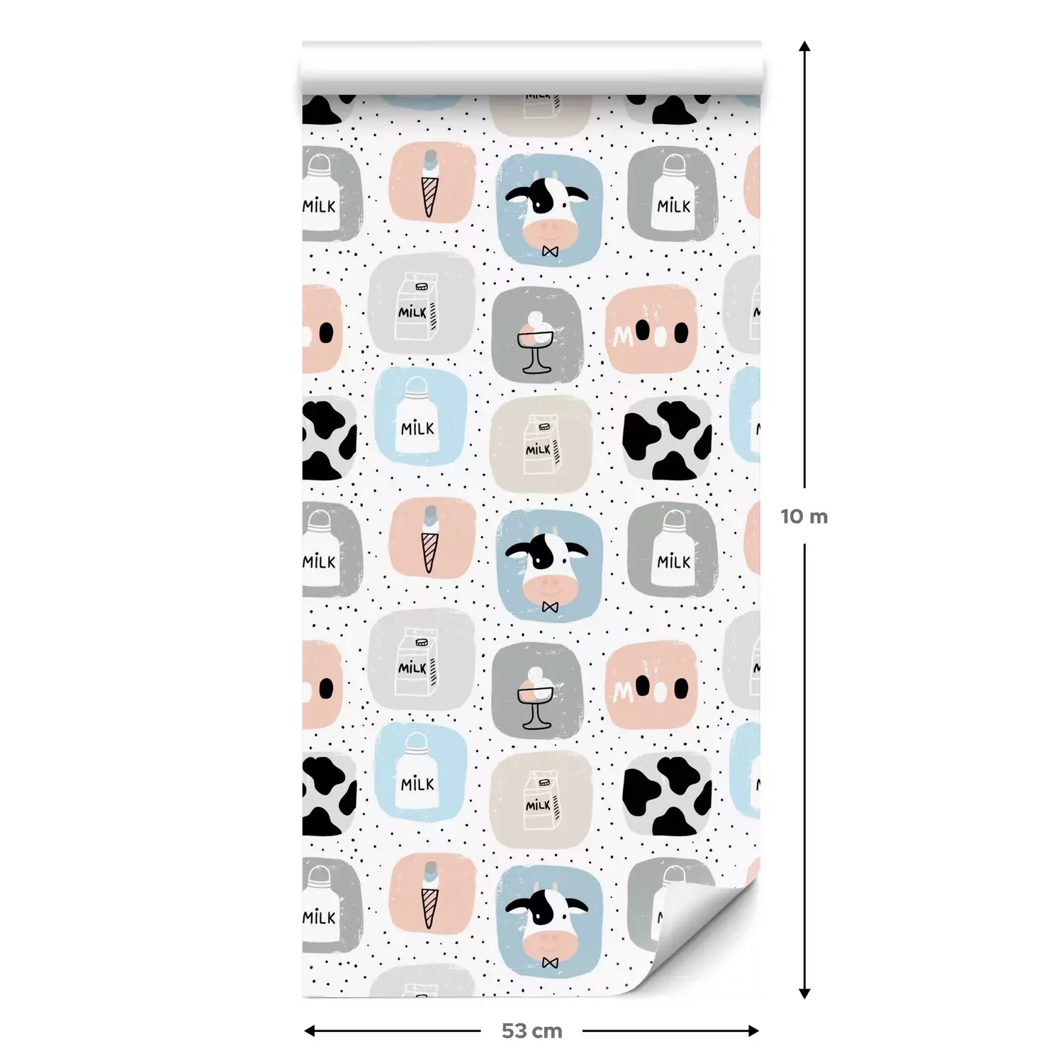 Eine Standard-Tapetenrolle hat die Maße 0,53 m x 10 m und deckt eine Wandfläche von etwa 5 m² ab.