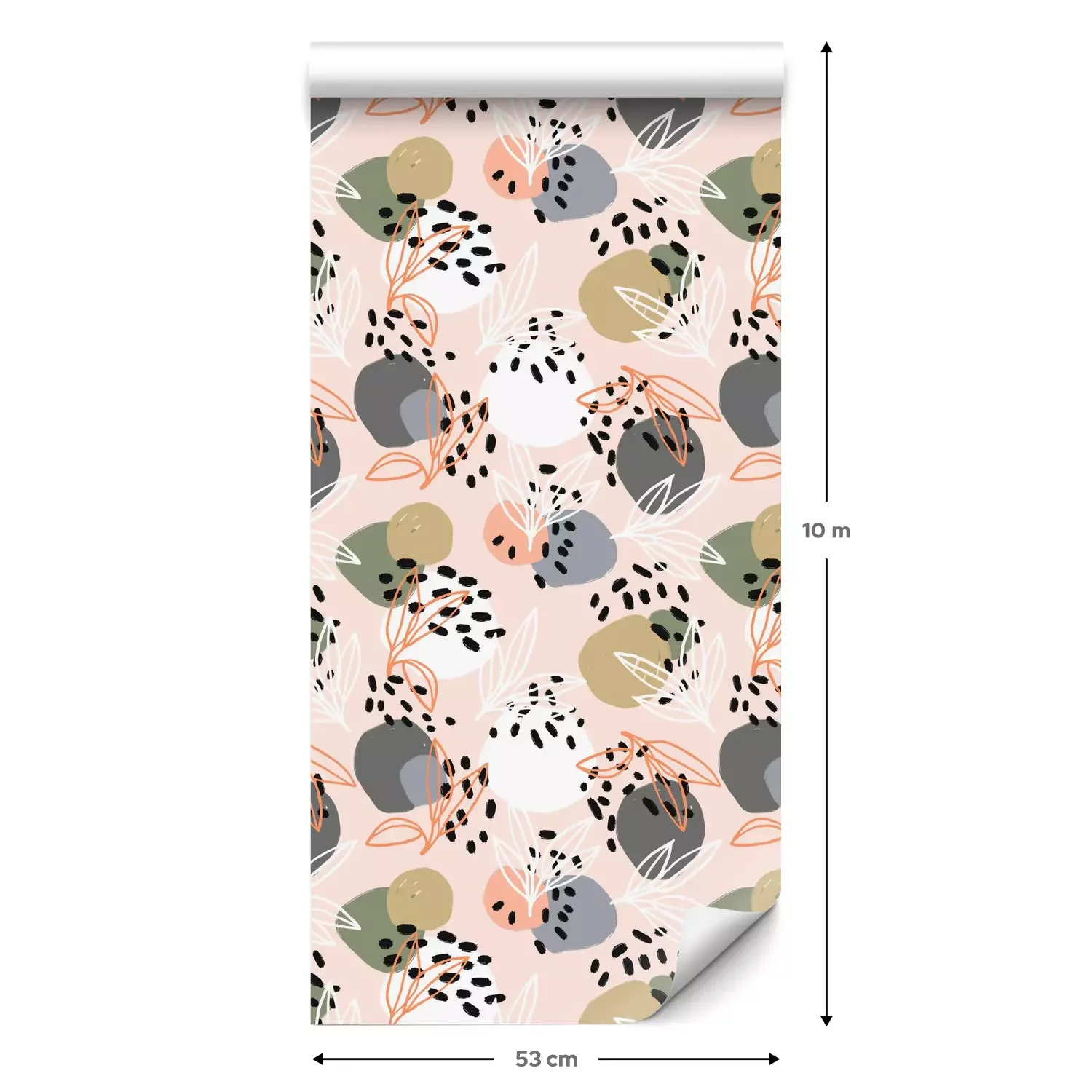 Eine Standard-Tapetenrolle hat die Maße 0,53 m x 10 m und deckt eine Wandfläche von etwa 5 m² ab.