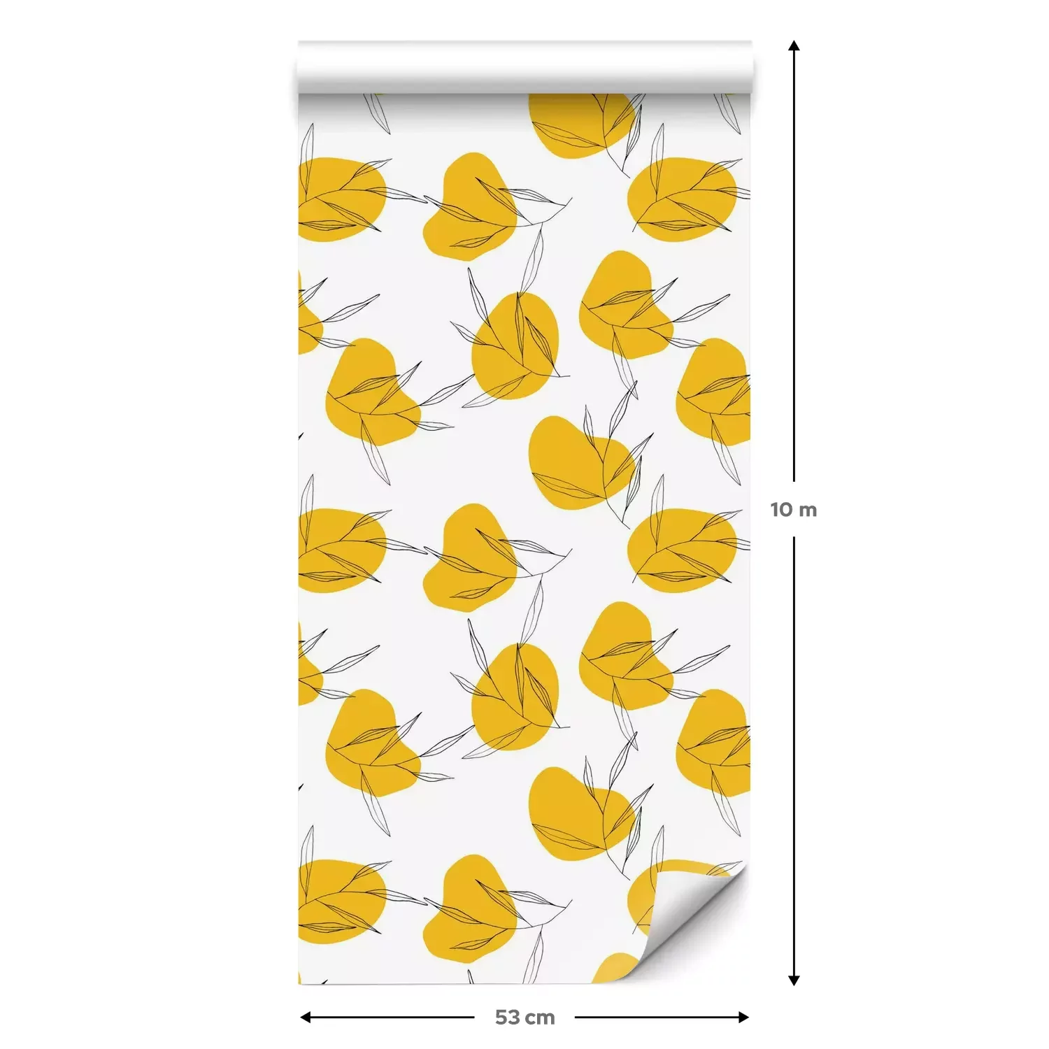 Eine Standard-Tapetenrolle hat die Maße 0,53 m x 10 m und deckt eine Wandfläche von etwa 5 m² ab.