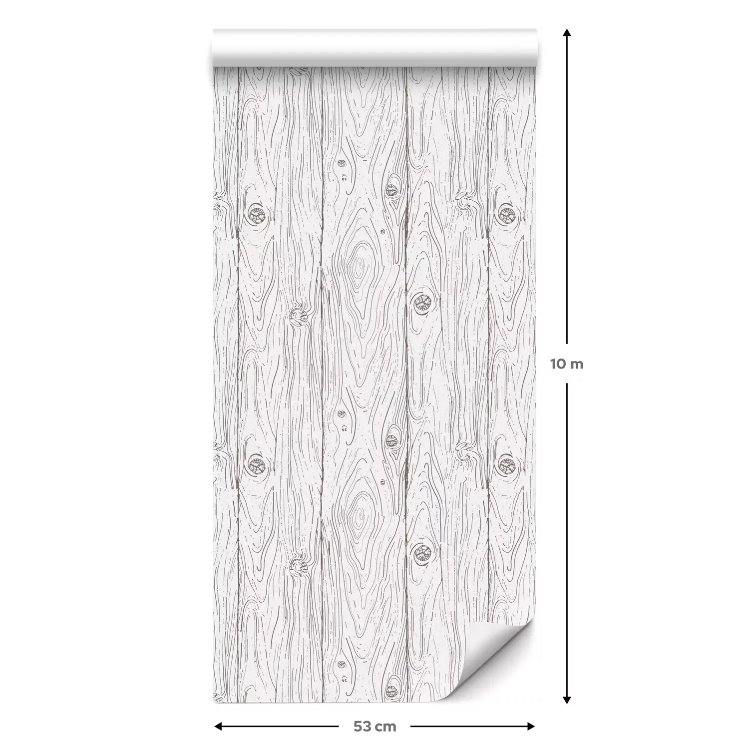 Eine Standard-Tapetenrolle hat die Maße 0,53 m x 10 m und deckt eine Wandfläche von etwa 5 m² ab.