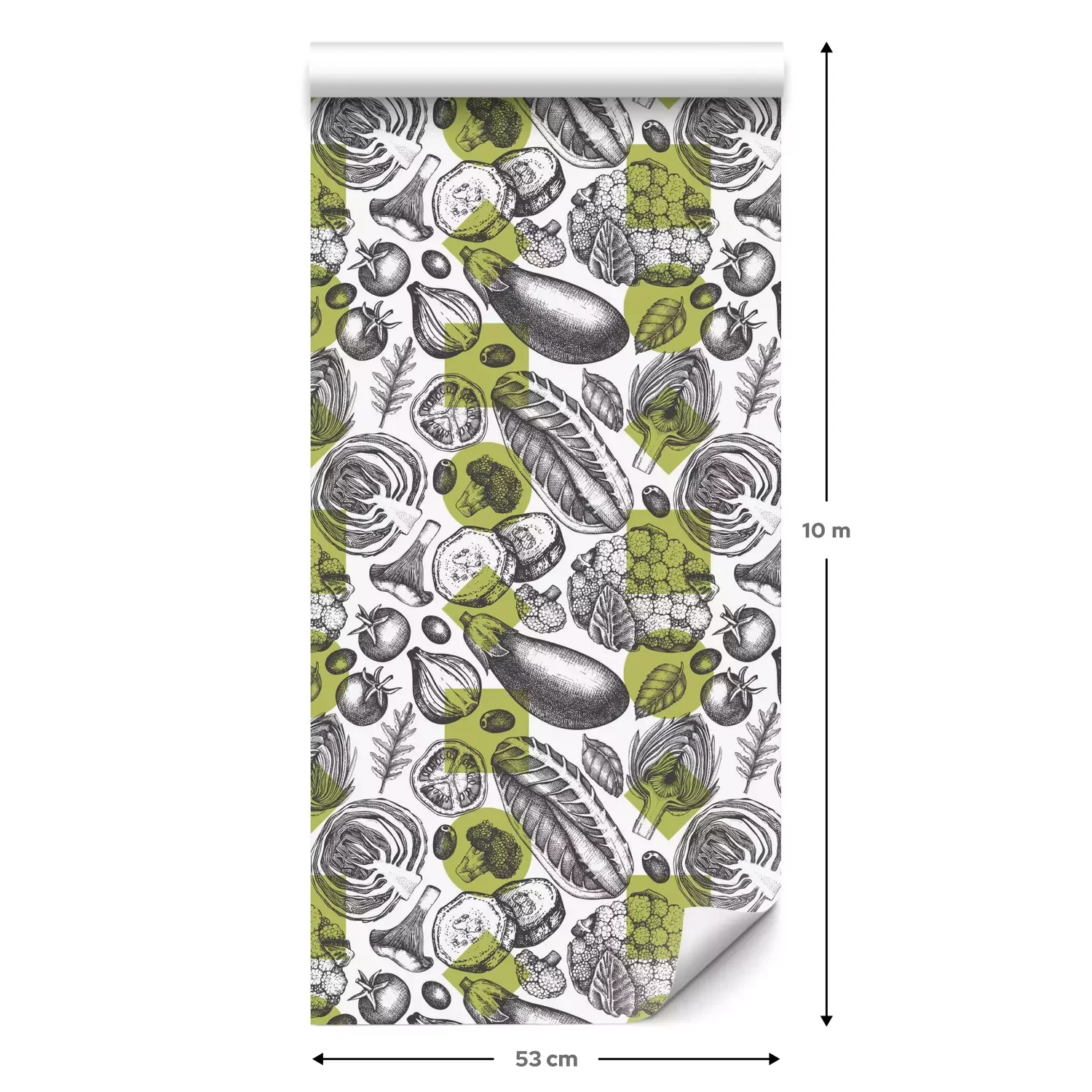 Eine Standard-Tapetenrolle hat die Maße 0,53 m x 10 m und deckt eine Wandfläche von etwa 5 m² ab.