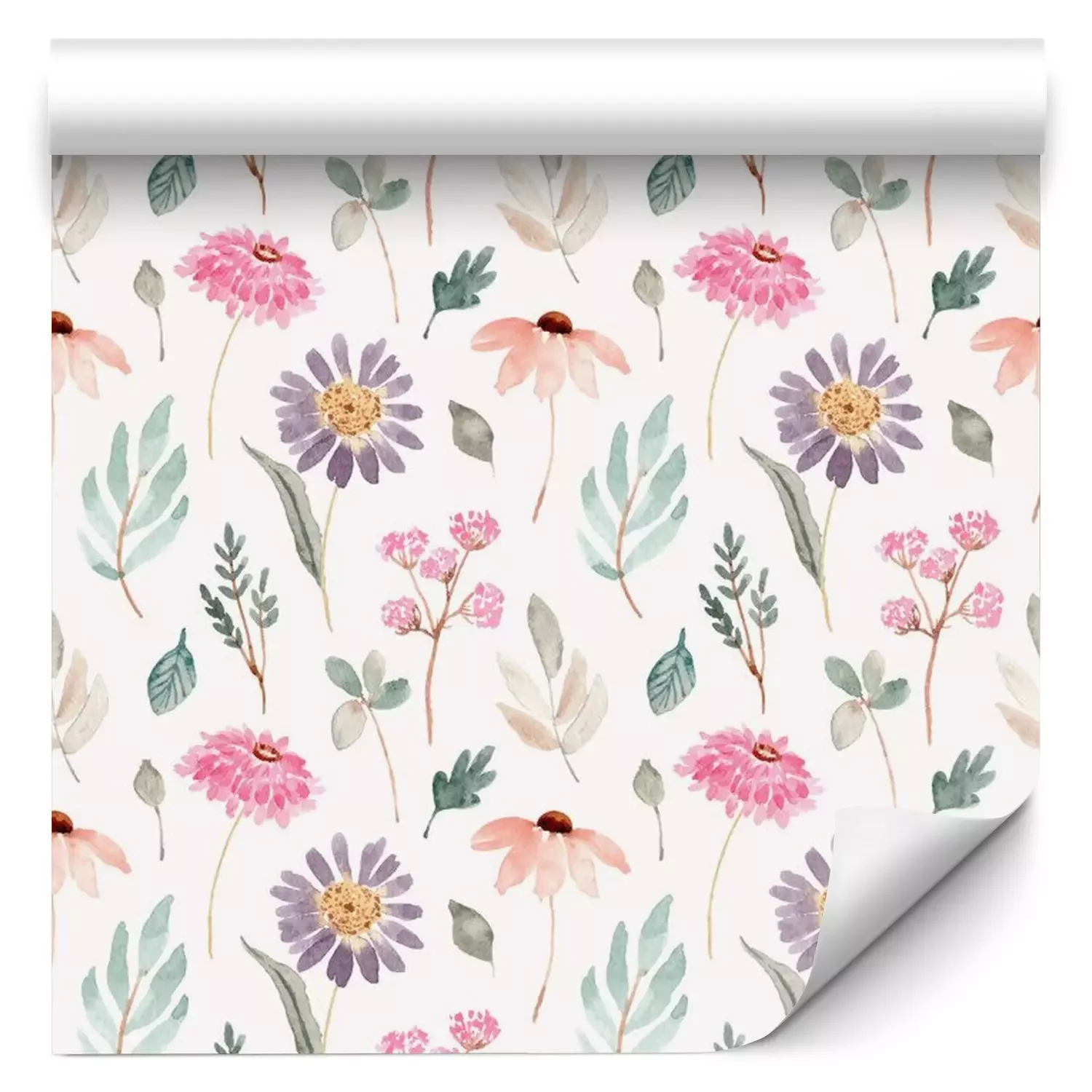 Tapete soft pink purple floral watercolor seamless pattern