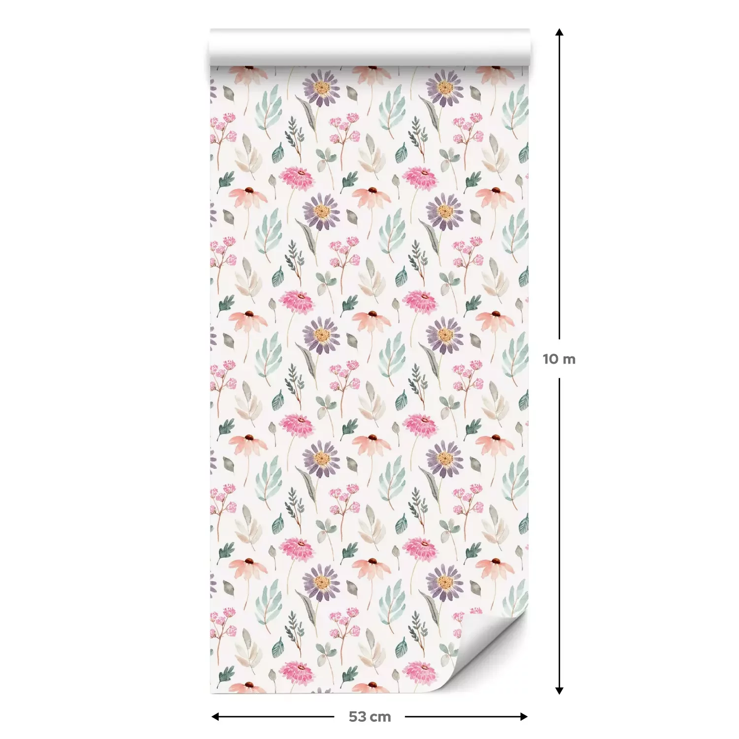 Eine Standard-Tapetenrolle hat die Maße 0,53 m x 10 m und deckt eine Wandfläche von etwa 5 m² ab.