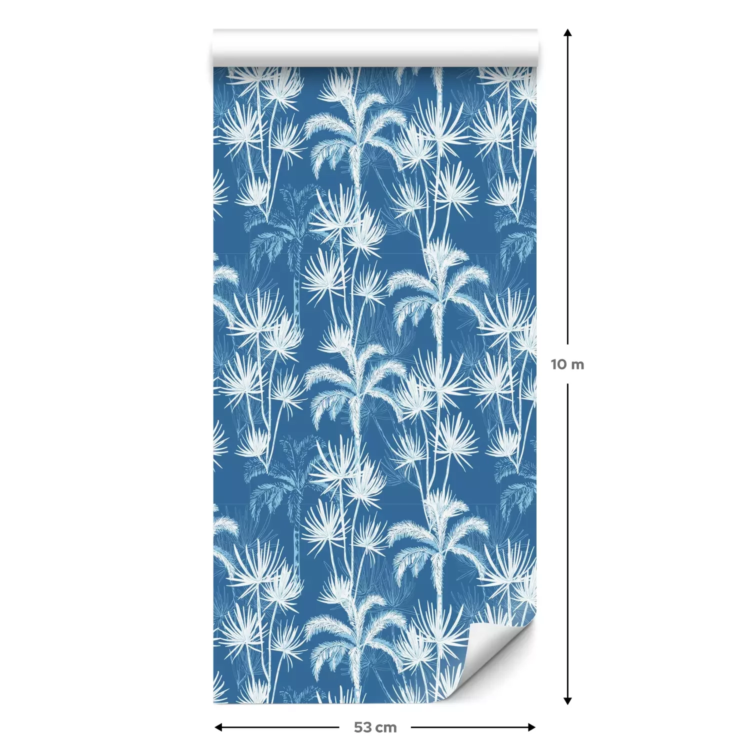 Eine Standard-Tapetenrolle hat die Maße 0,53 m x 10 m und deckt eine Wandfläche von etwa 5 m² ab.