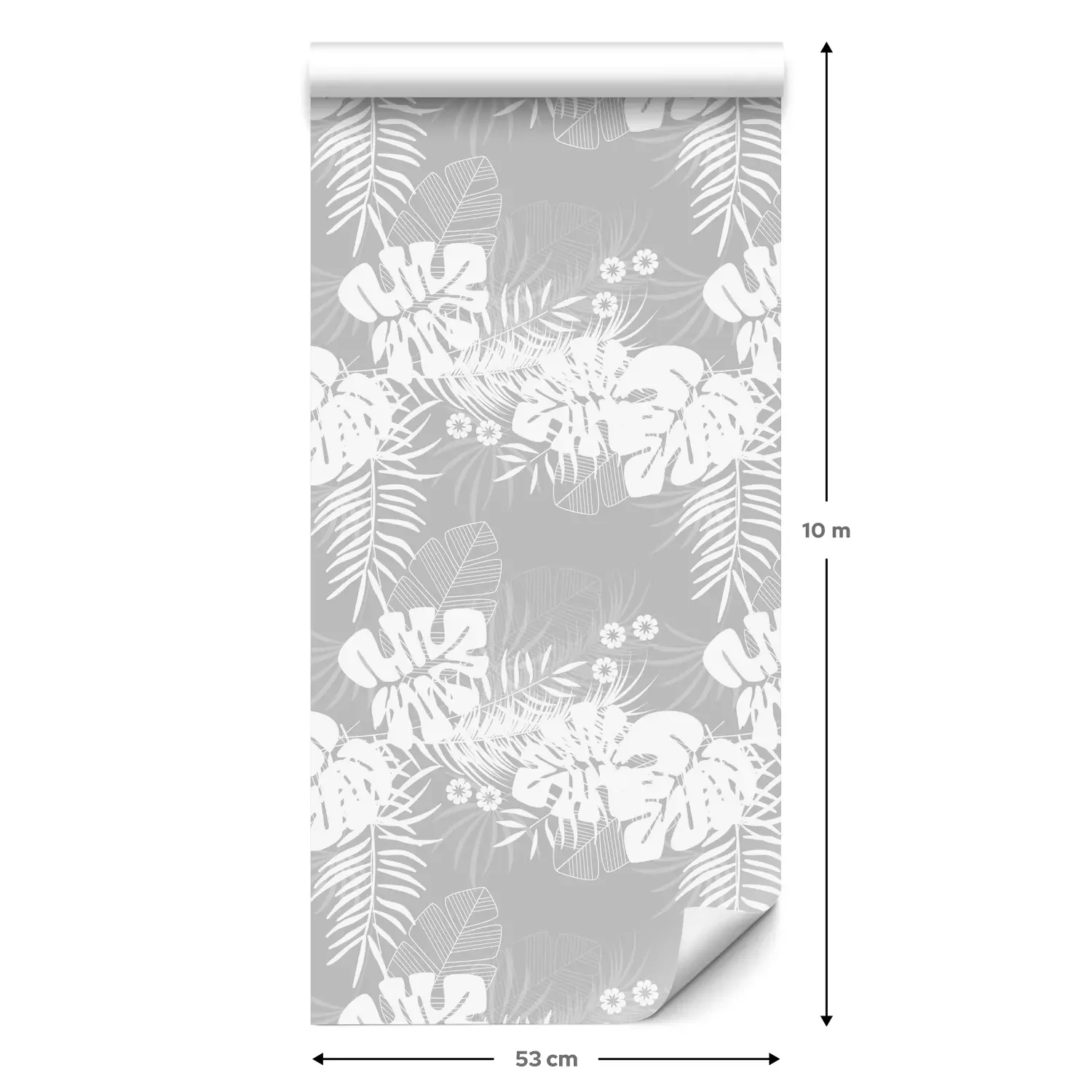 Eine Standard-Tapetenrolle hat die Maße 0,53 m x 10 m und deckt eine Wandfläche von etwa 5 m² ab.