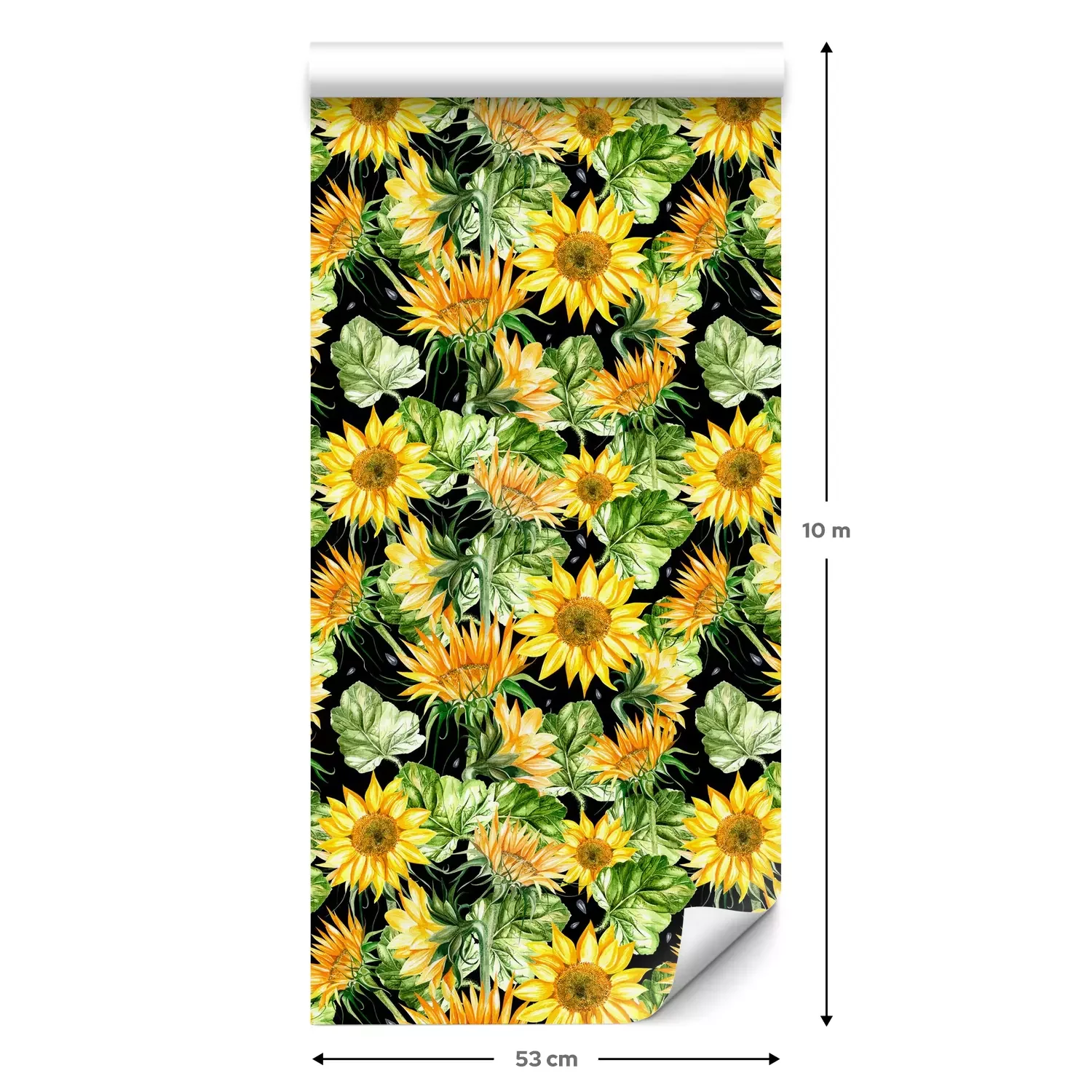 Eine Standard-Tapetenrolle hat die Maße 0,53 m x 10 m und deckt eine Wandfläche von etwa 5 m² ab.