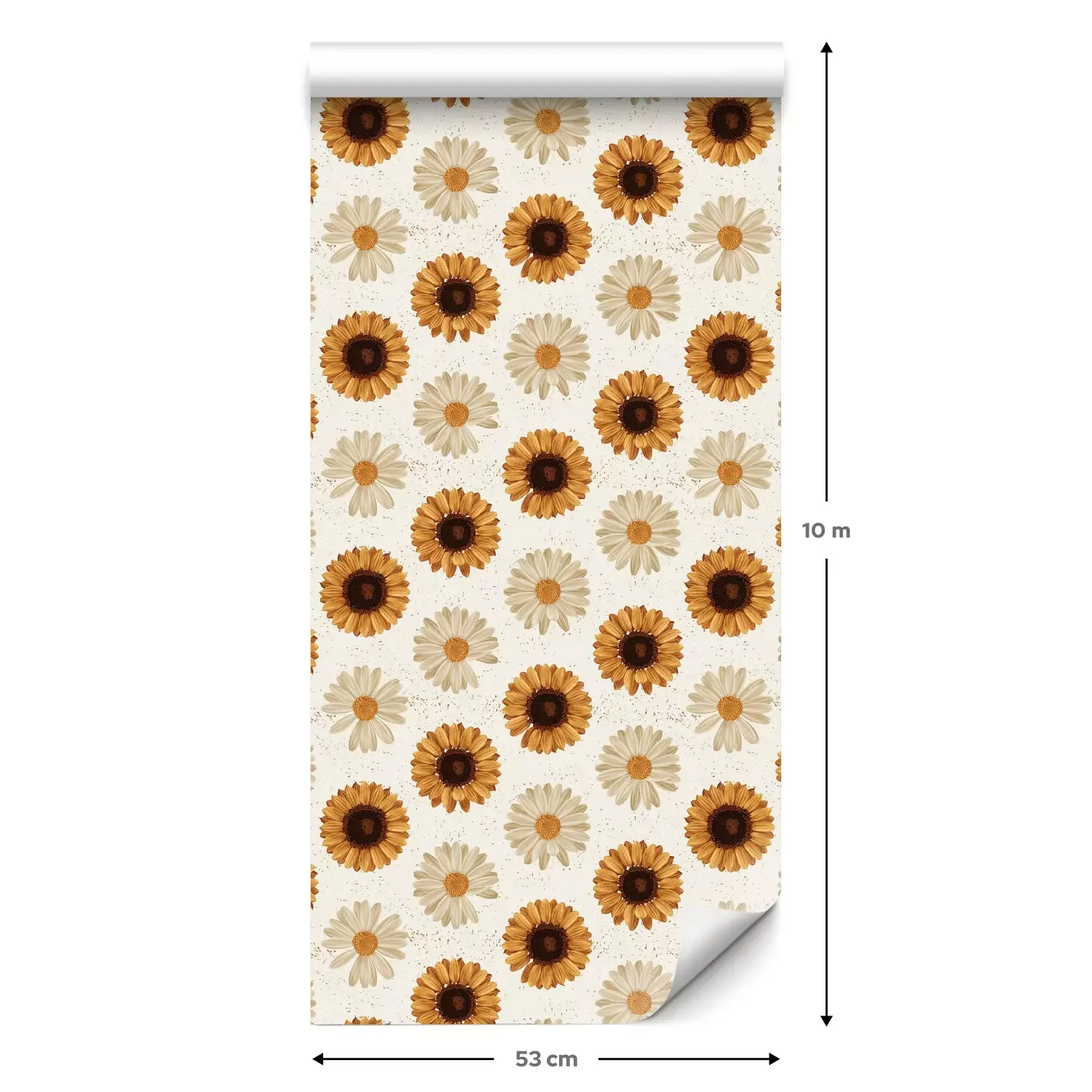 Eine Standard-Tapetenrolle hat die Maße 0,53 m x 10 m und deckt eine Wandfläche von etwa 5 m² ab.