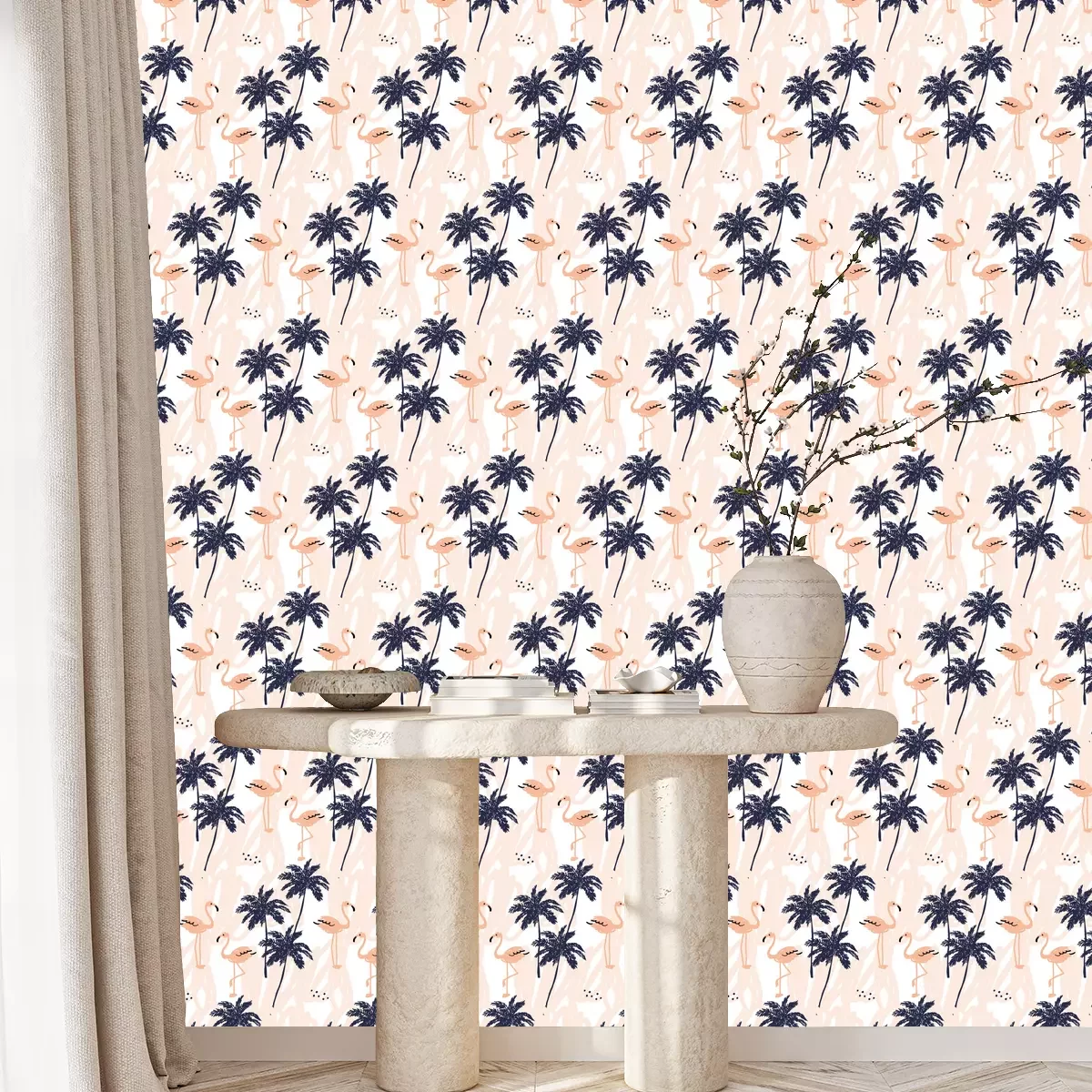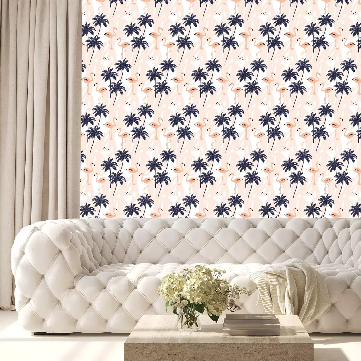Palmflamingos und MusterProblemlose Lieferung durch vertrauenswürdige Spediteure
