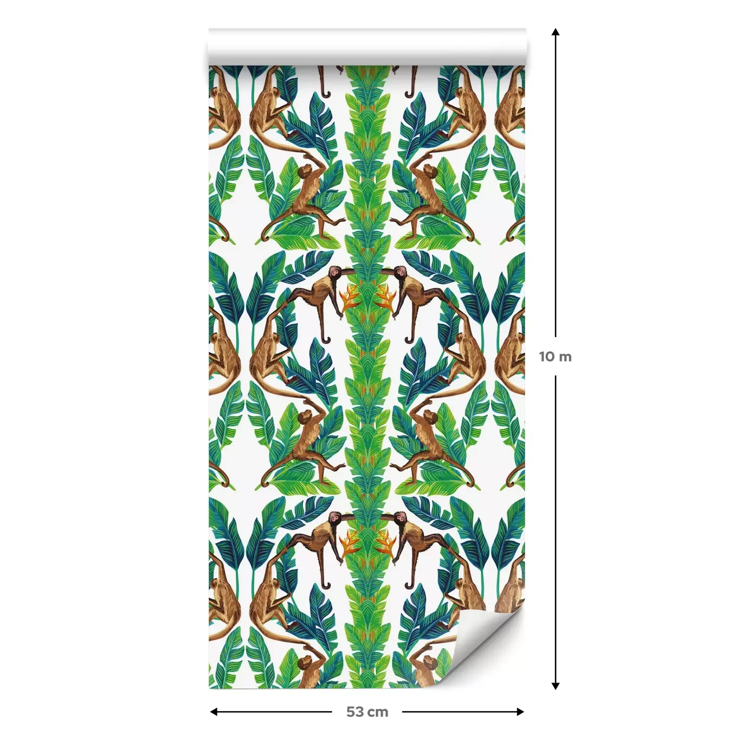 Eine Standard-Tapetenrolle hat die Maße 0,53 m x 10 m und deckt eine Wandfläche von etwa 5 m² ab.