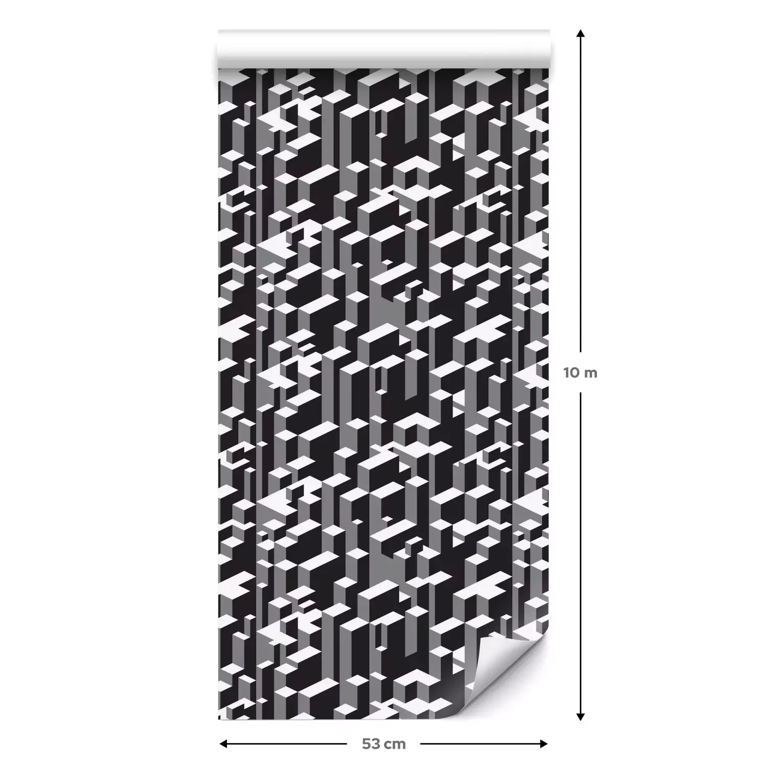 Eine Standard-Tapetenrolle hat die Maße 0,53 m x 10 m und deckt eine Wandfläche von etwa 5 m² ab.