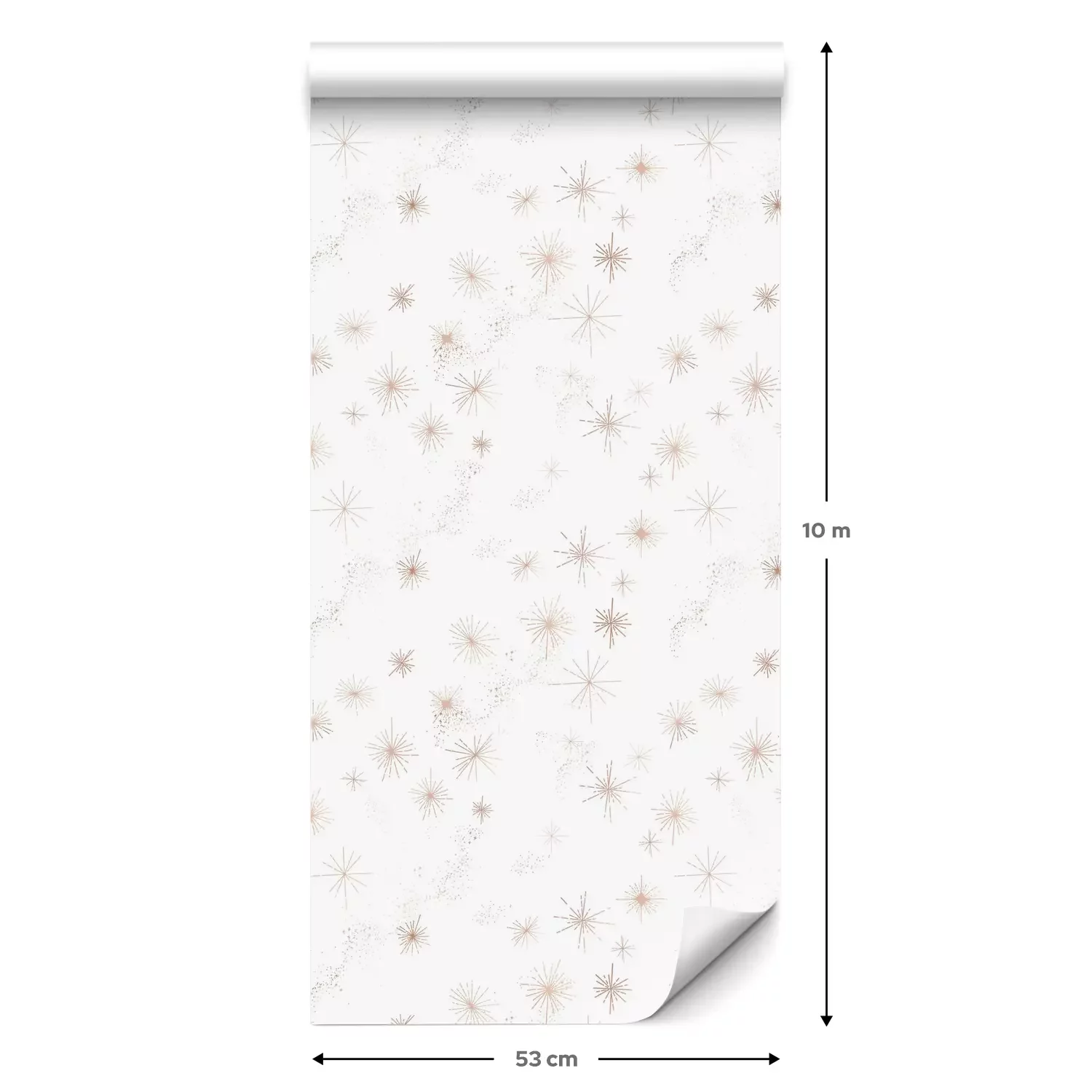 Eine Standard-Tapetenrolle hat die Maße 0,53 m x 10 m und deckt eine Wandfläche von etwa 5 m² ab.