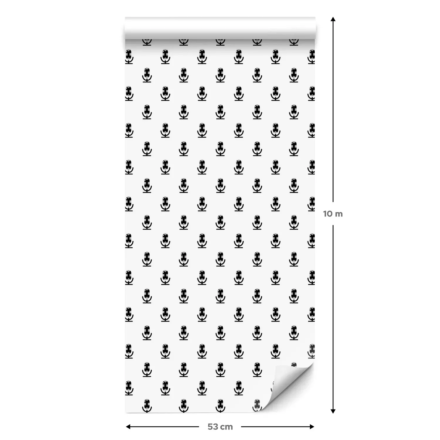 Eine Standard-Tapetenrolle hat die Maße 0,53 m x 10 m und deckt eine Wandfläche von etwa 5 m² ab.