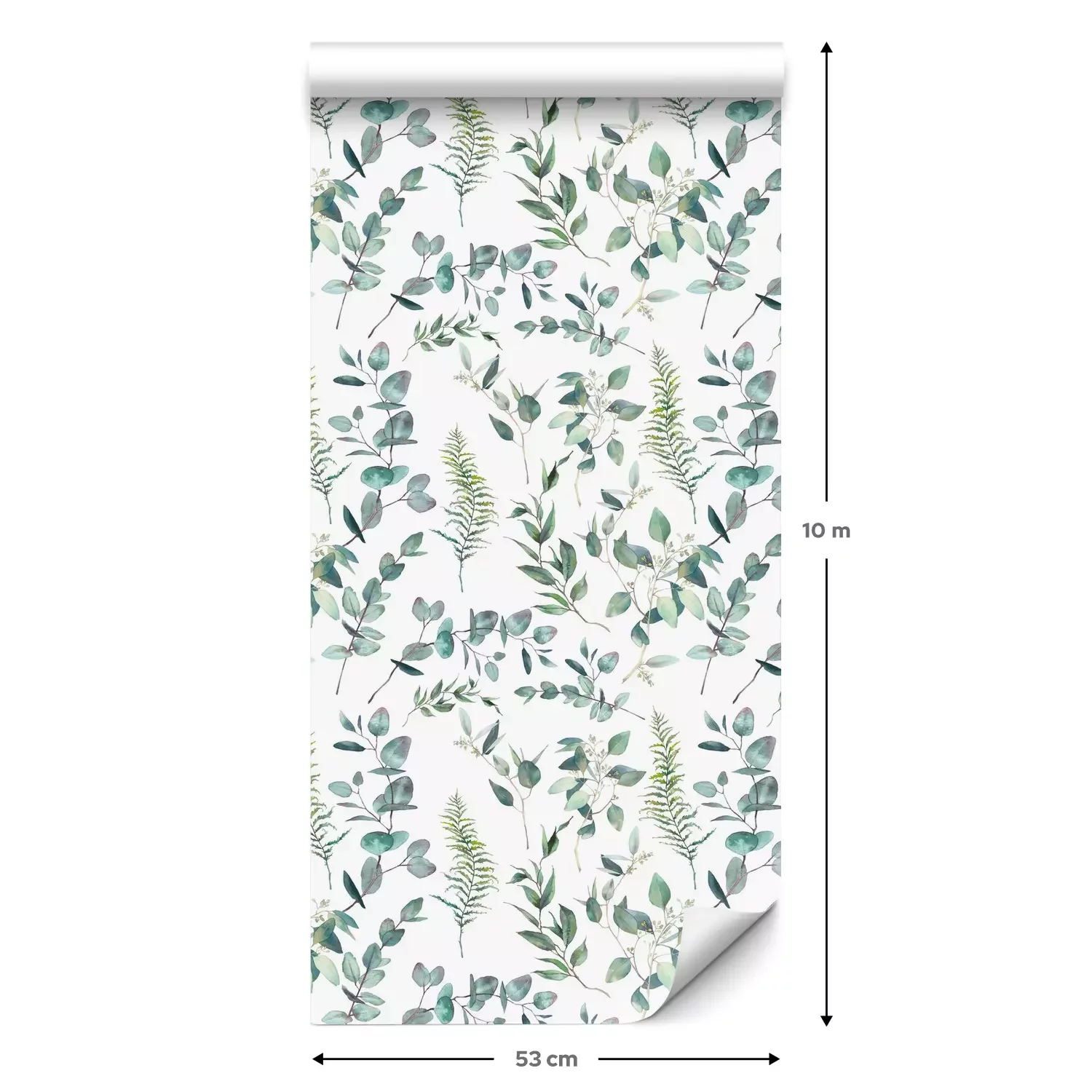 Eine Standard-Tapetenrolle hat die Maße 0,53 m x 10 m und deckt eine Wandfläche von etwa 5 m² ab.