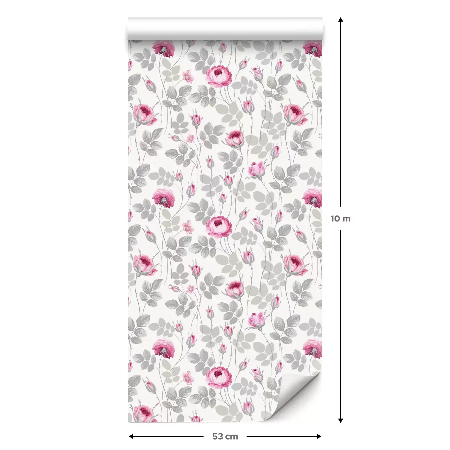 Eine Standard-Tapetenrolle hat die Maße 0,53 m x 10 m und deckt eine Wandfläche von etwa 5 m² ab.