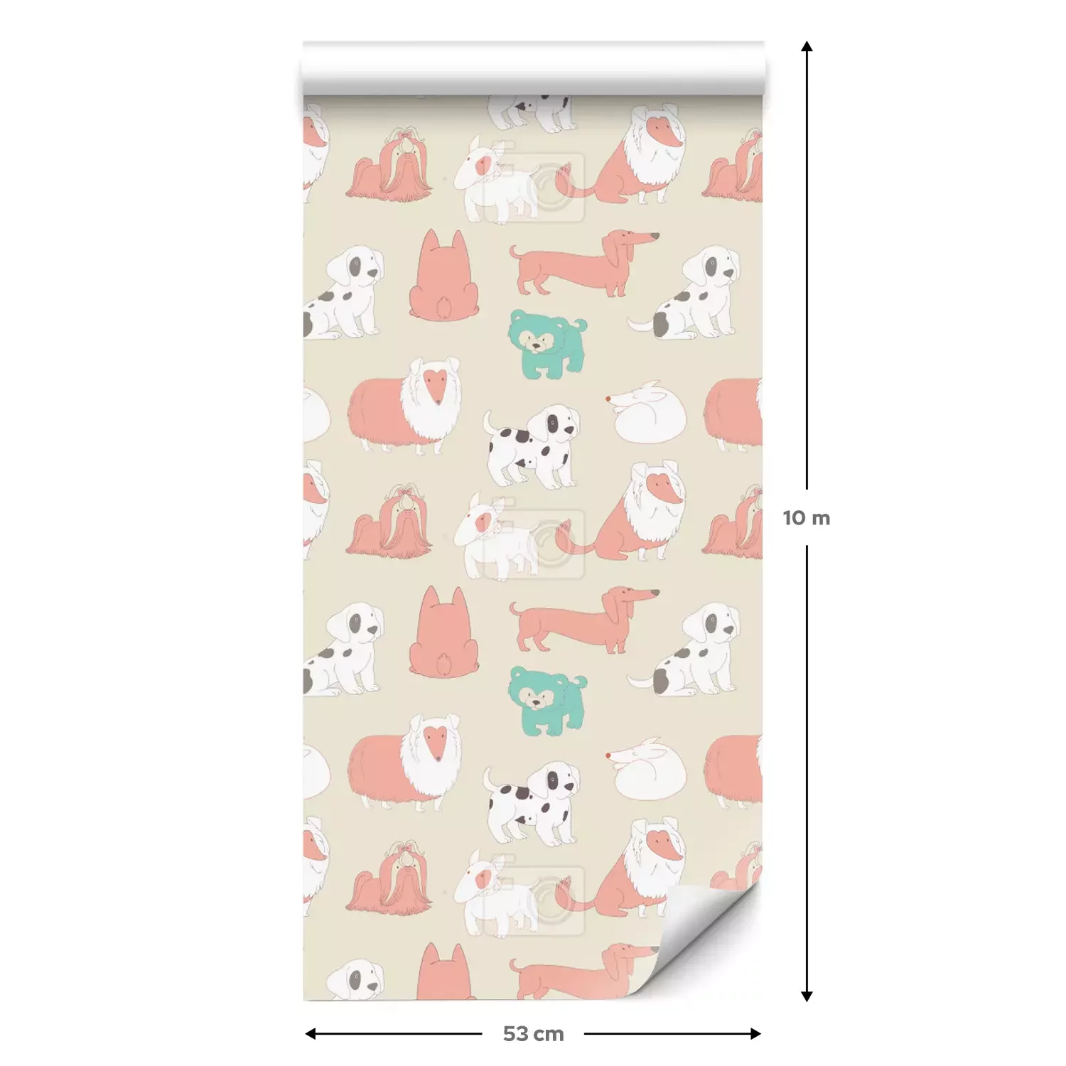 Eine Standard-Tapetenrolle hat die Maße 0,53 m x 10 m und deckt eine Wandfläche von etwa 5 m² ab.