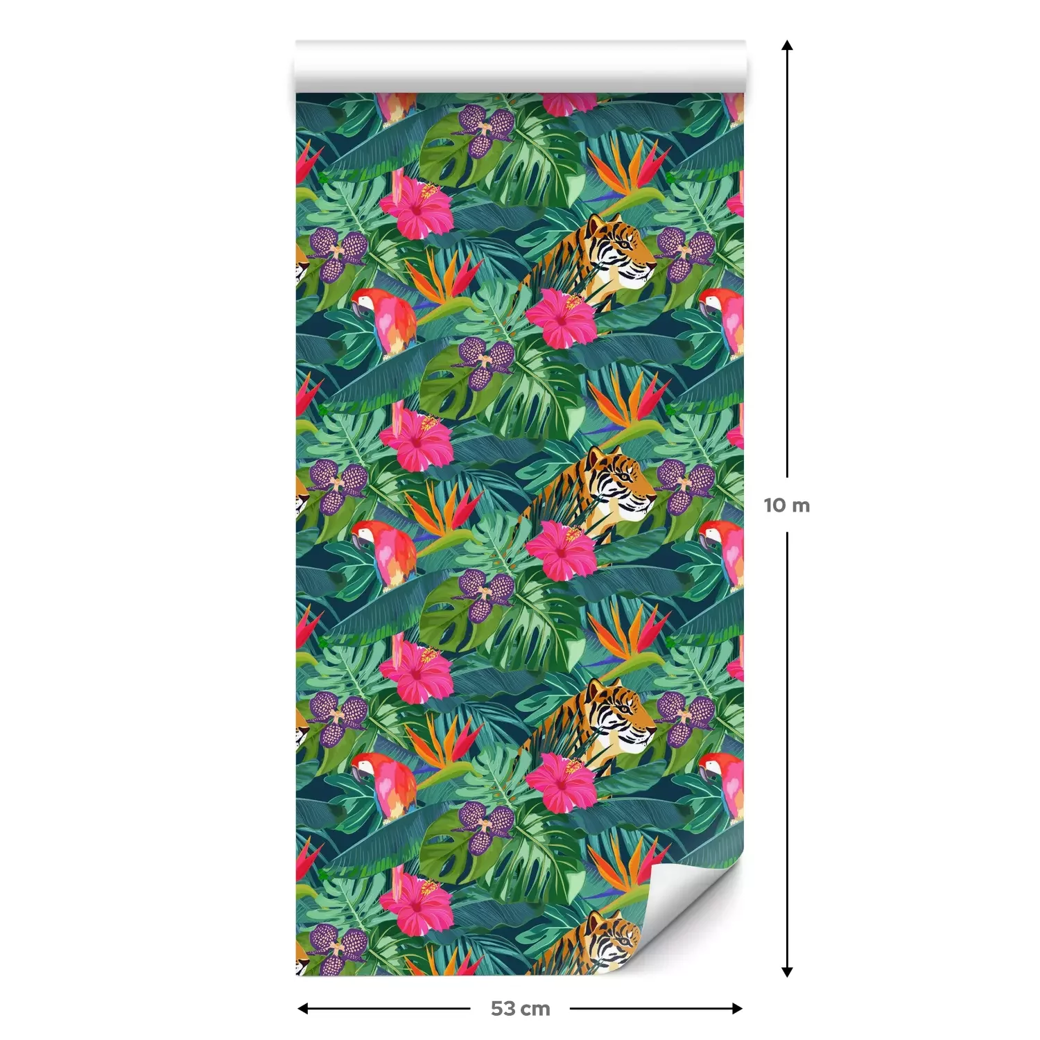 Eine Standard-Tapetenrolle hat die Maße 0,53 m x 10 m und deckt eine Wandfläche von etwa 5 m² ab.