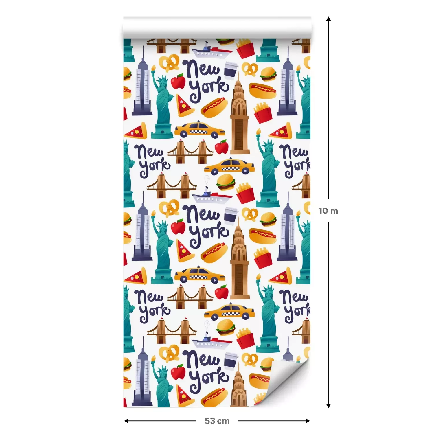 Eine Standard-Tapetenrolle hat die Maße 0,53 m x 10 m und deckt eine Wandfläche von etwa 5 m² ab.