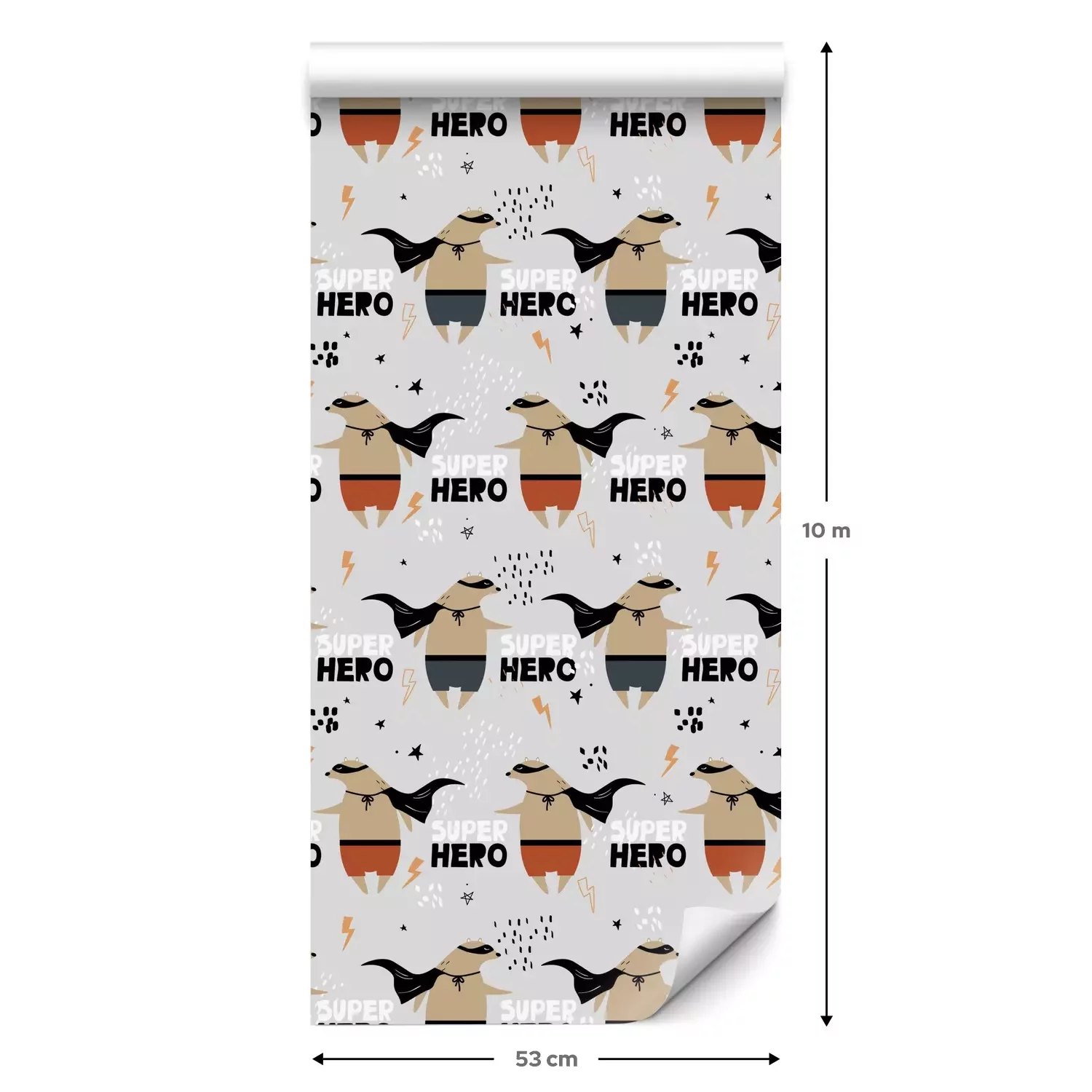 Eine Standard-Tapetenrolle hat die Maße 0,53 m x 10 m und deckt eine Wandfläche von etwa 5 m² ab.