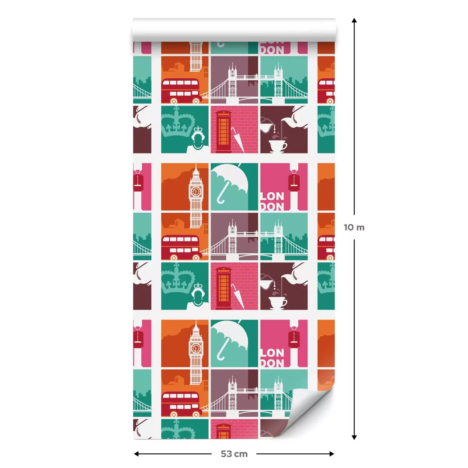 Eine Standard-Tapetenrolle hat die Maße 0,53 m x 10 m und deckt eine Wandfläche von etwa 5 m² ab.