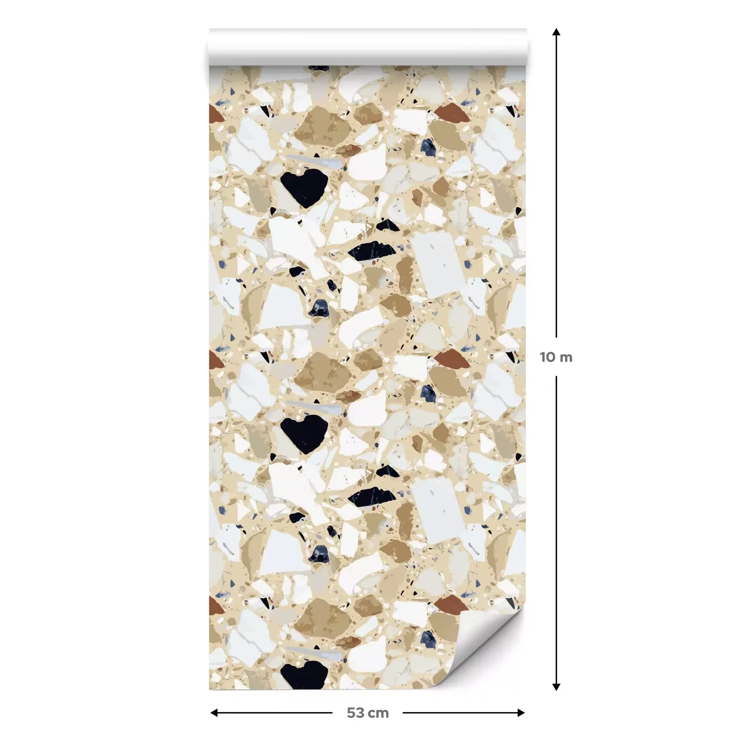 Eine Standard-Tapetenrolle hat die Maße 0,53 m x 10 m und deckt eine Wandfläche von etwa 5 m² ab.