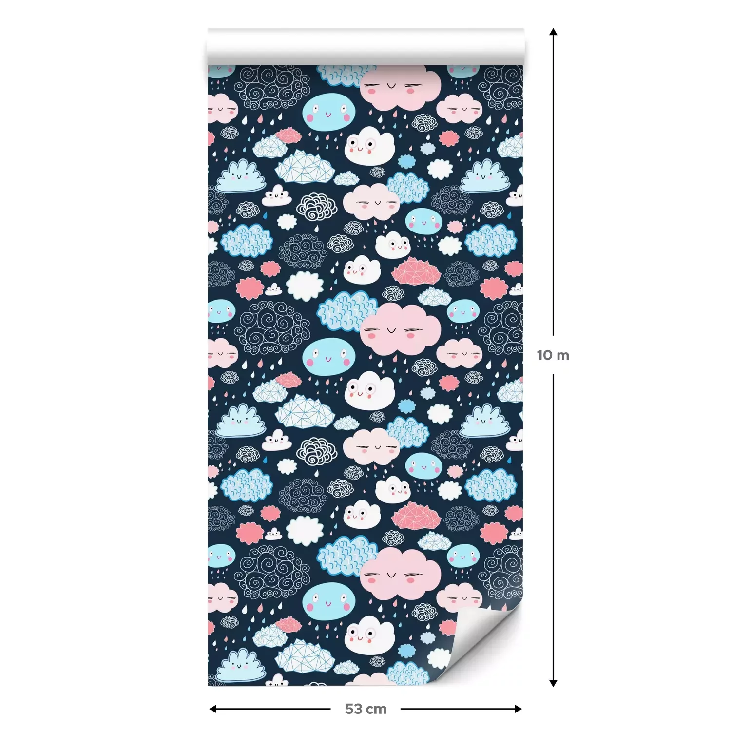 Eine Standard-Tapetenrolle hat die Maße 0,53 m x 10 m und deckt eine Wandfläche von etwa 5 m² ab.