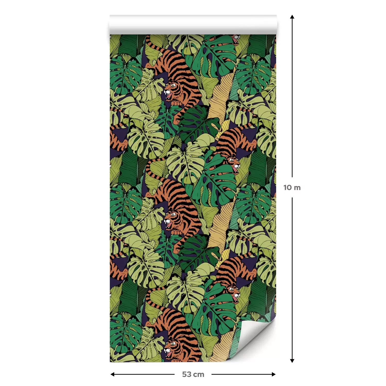 Eine Standard-Tapetenrolle hat die Maße 0,53 m x 10 m und deckt eine Wandfläche von etwa 5 m² ab.