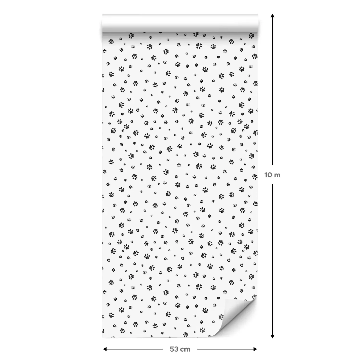 Eine Standard-Tapetenrolle hat die Maße 0,53 m x 10 m und deckt eine Wandfläche von etwa 5 m² ab.