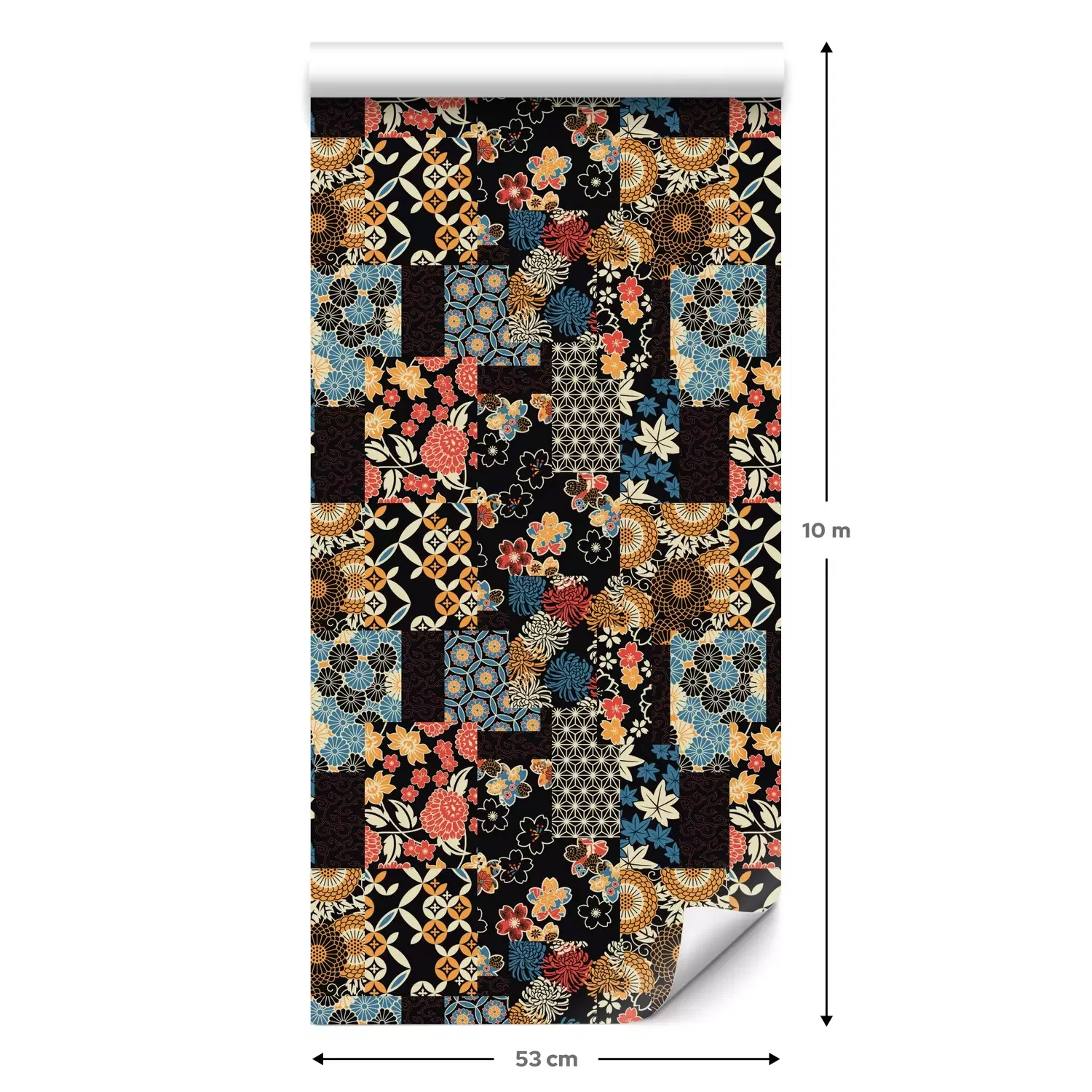 Eine Standard-Tapetenrolle hat die Maße 0,53 m x 10 m und deckt eine Wandfläche von etwa 5 m² ab.