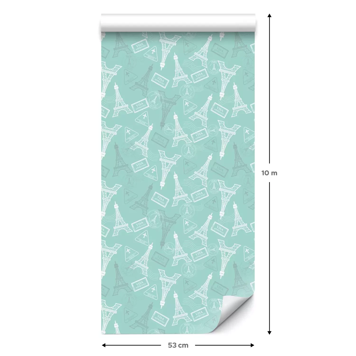 Eine Standard-Tapetenrolle hat die Maße 0,53 m x 10 m und deckt eine Wandfläche von etwa 5 m² ab.