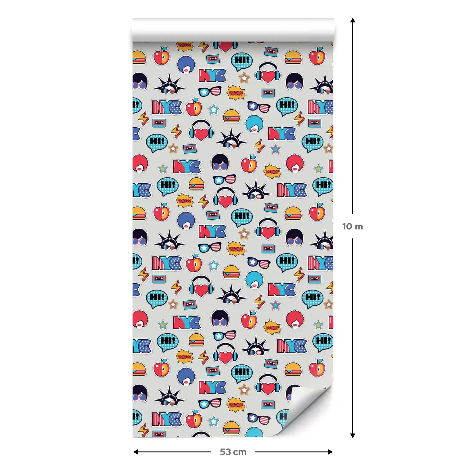 Eine Standard-Tapetenrolle hat die Maße 0,53 m x 10 m und deckt eine Wandfläche von etwa 5 m² ab.